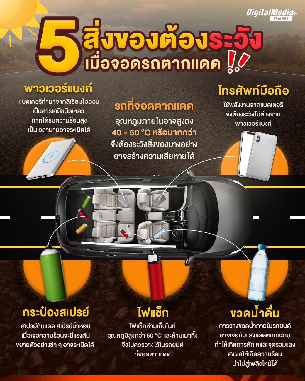 5 สิ่งของต้องระวังเมื่อจอดรถตากแดด