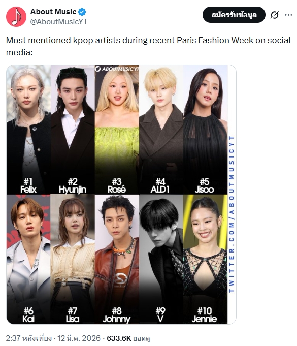 🔥 Stray Kids Felix และ Hyunjin เป็นคนดัง K-pop ถูกกล่าวถึงมากสุด 2 อันดับแรกบนโซเชียลมีเดียใน Paris Fashion Week FW26