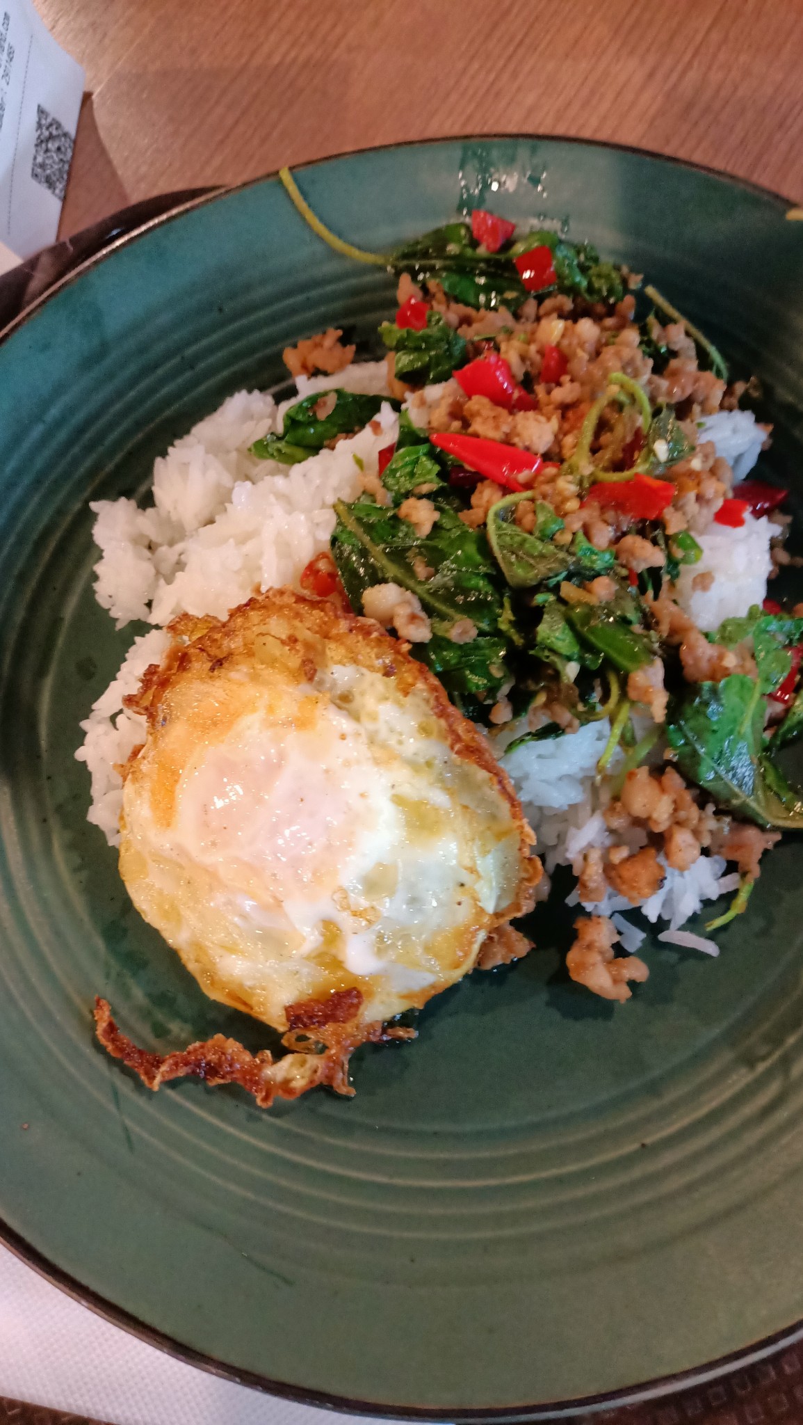 Spicy Pork Basil wt Rice and Egg (กะเพราหมูไข่ดาว 165 บาท)