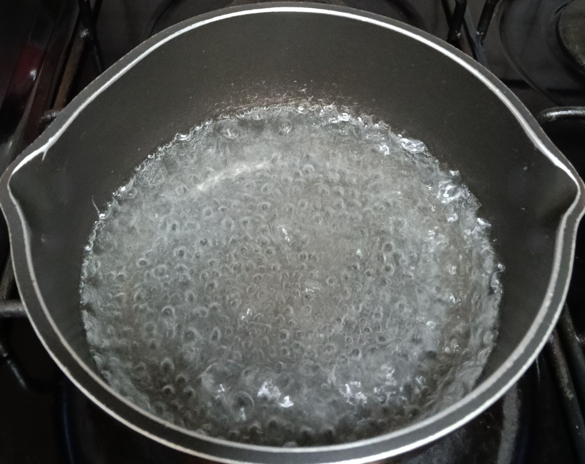 ใส่น้ำลงไปในหม้อ ตั้งไฟให้เดือด
