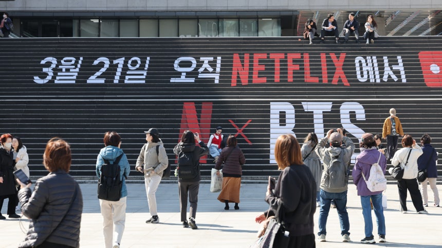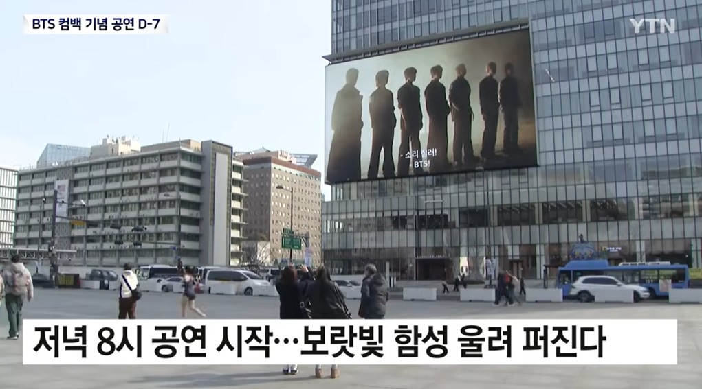 คอนเสิร์ตคัมแบ็กของ BTS สร้างกระแสฮือฮาในควางฮวามุน ผู้สื่อข่าวในพื้นที่กล่าวว่า