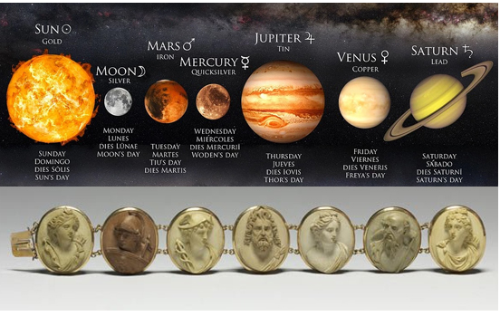 ชาวบาบิโลนและโรมันโบราณสังเกตเห็น "วัตถุบนท้องฟ้าที่เคลื่อนที่ได้" 7 อย่าง จึงนำมาตั้งชื่อวันตามเทพเจ้าที่พวกเขาเคารพ