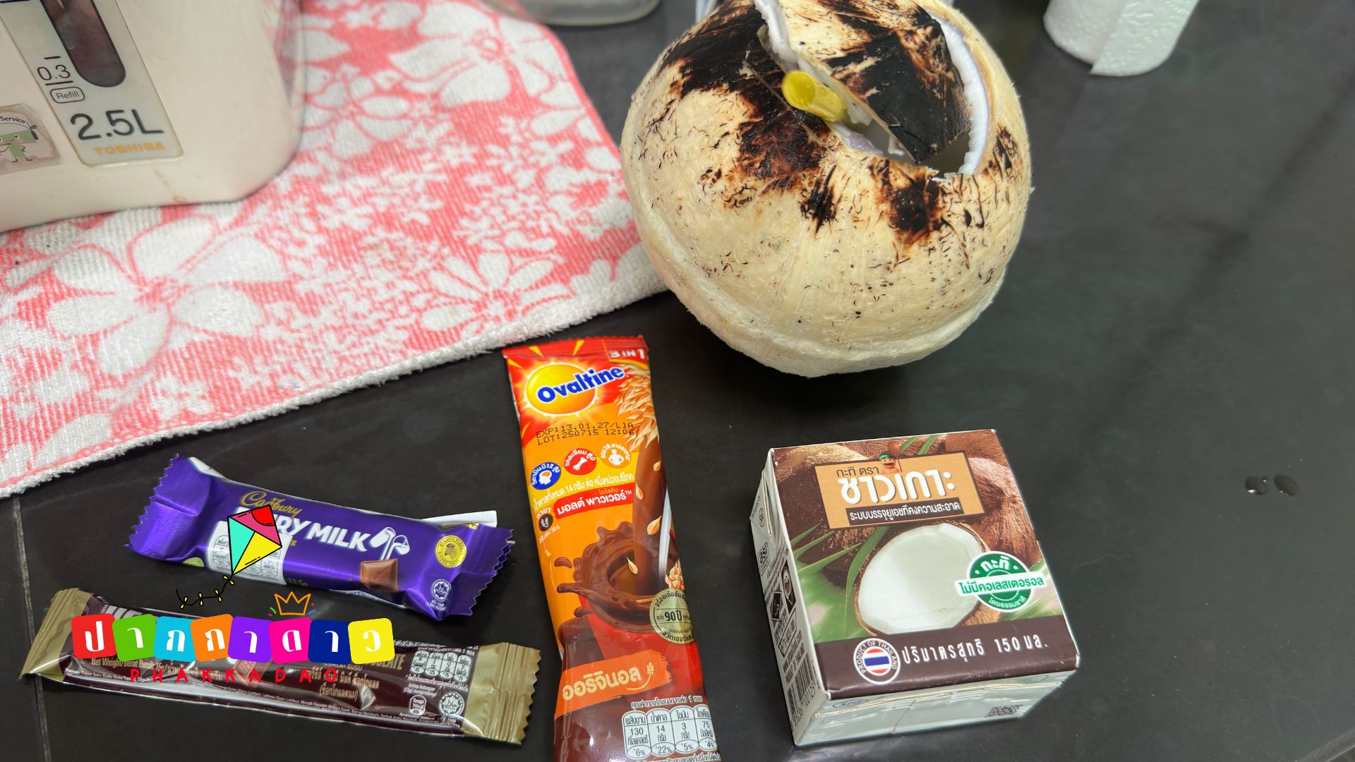 โอวัลตินหรือไมโลก็ได้ และกะทะ เอ้ย กะท้อน เฮ้ย กะทิ นั่นแหละ