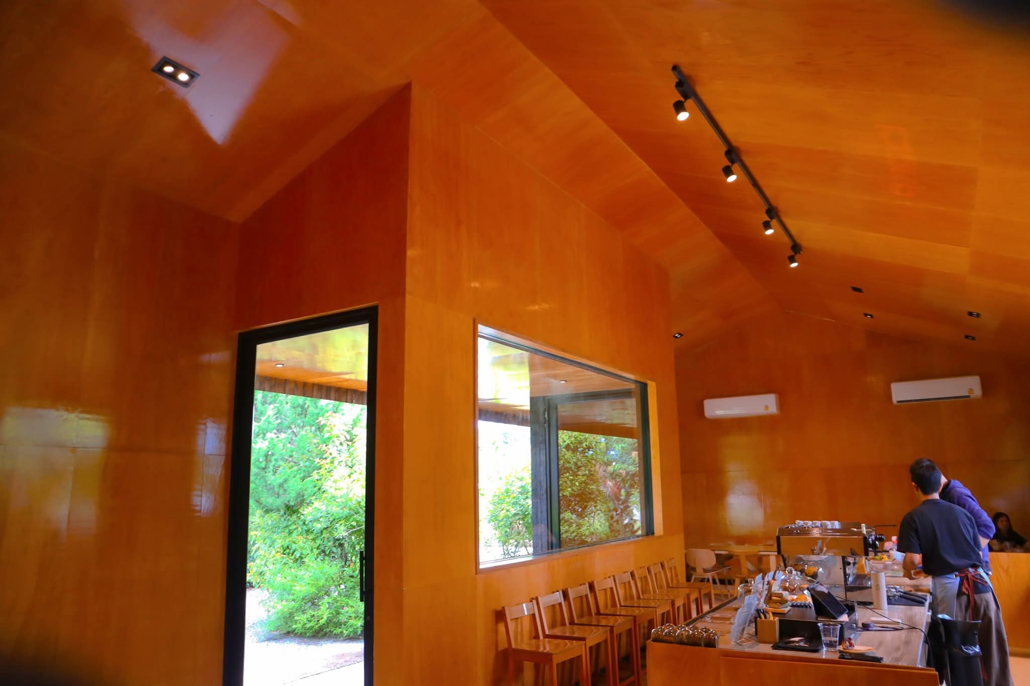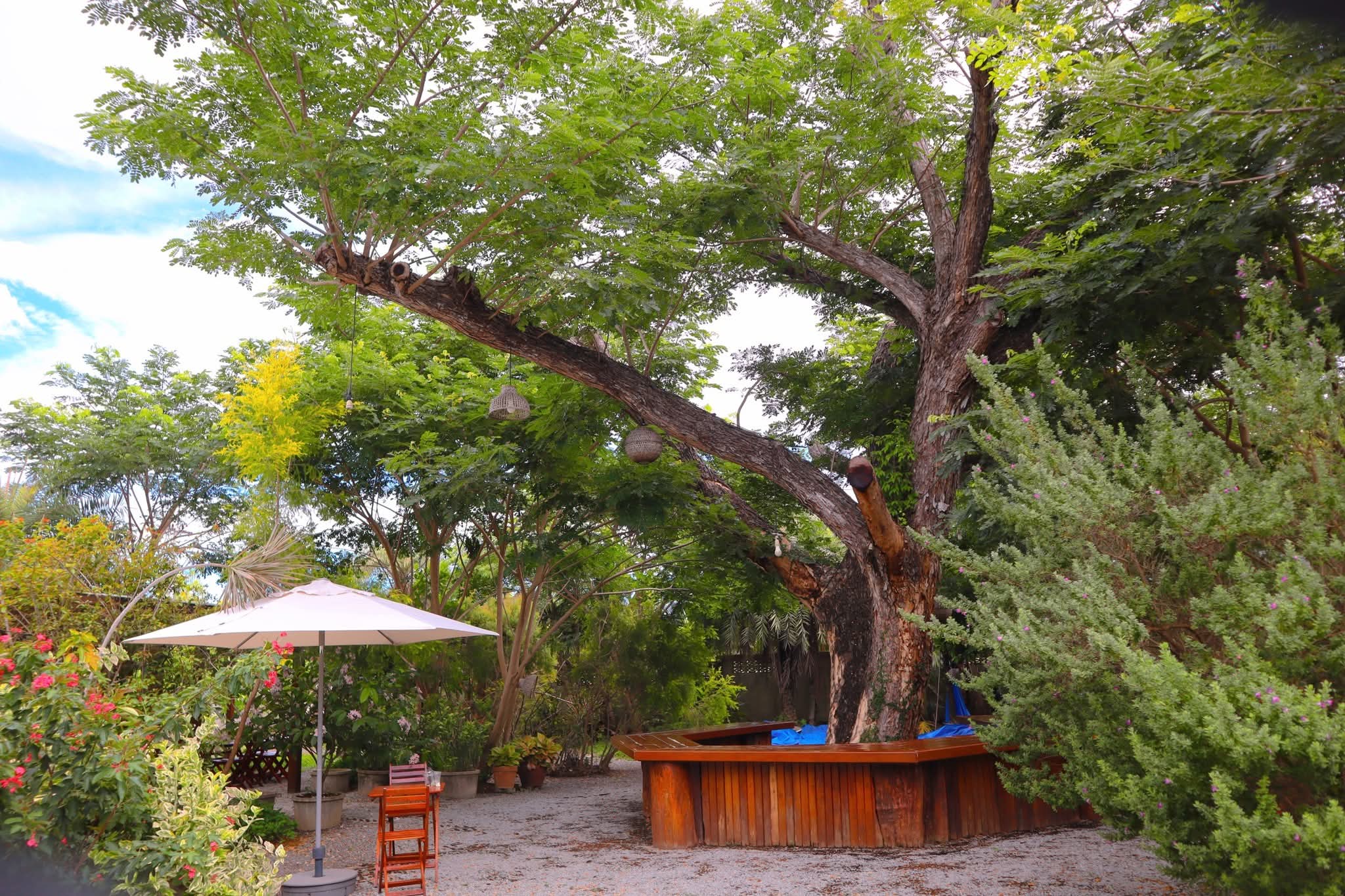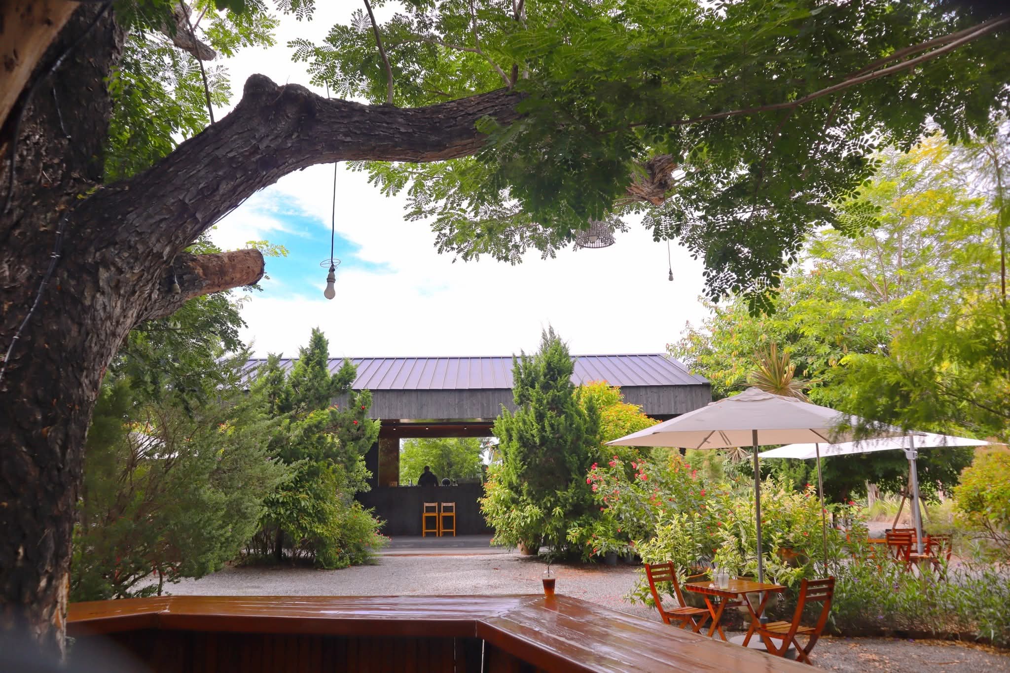 คาเฟ่เล็กๆ ด้านในร้านตกแต่งด้วยไม้ดูอบอุ่น ด้านนอกมีต้นไม้ใหญ่ ให้ร่มเงา นั่งแล้วสูดชื่น ไม่วุ่นวาย