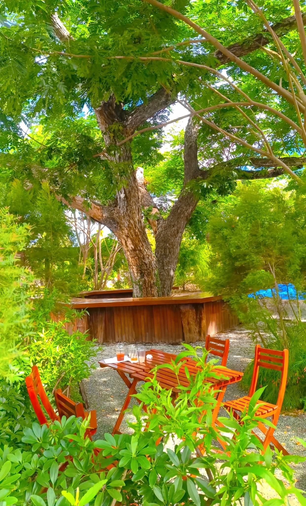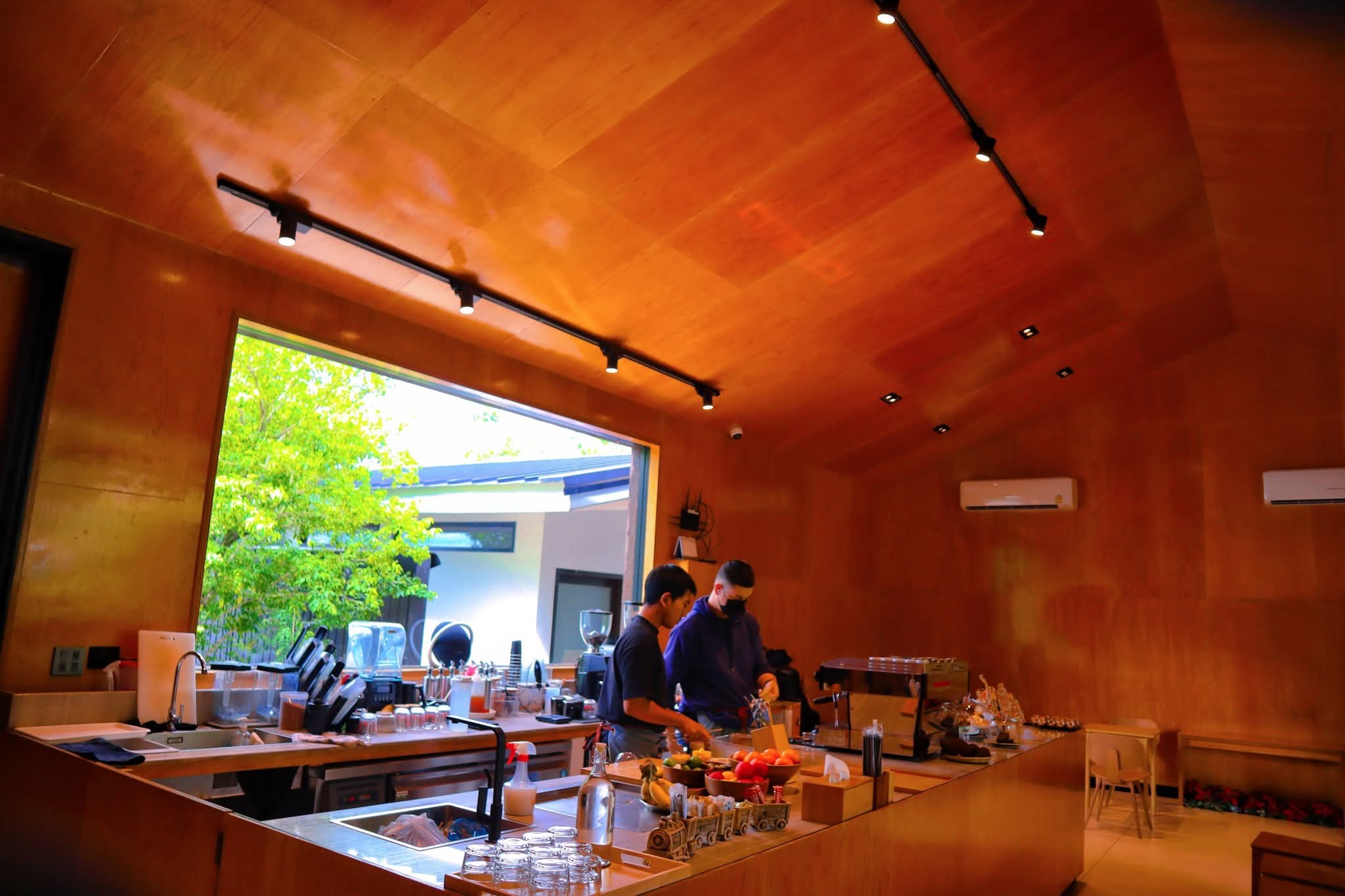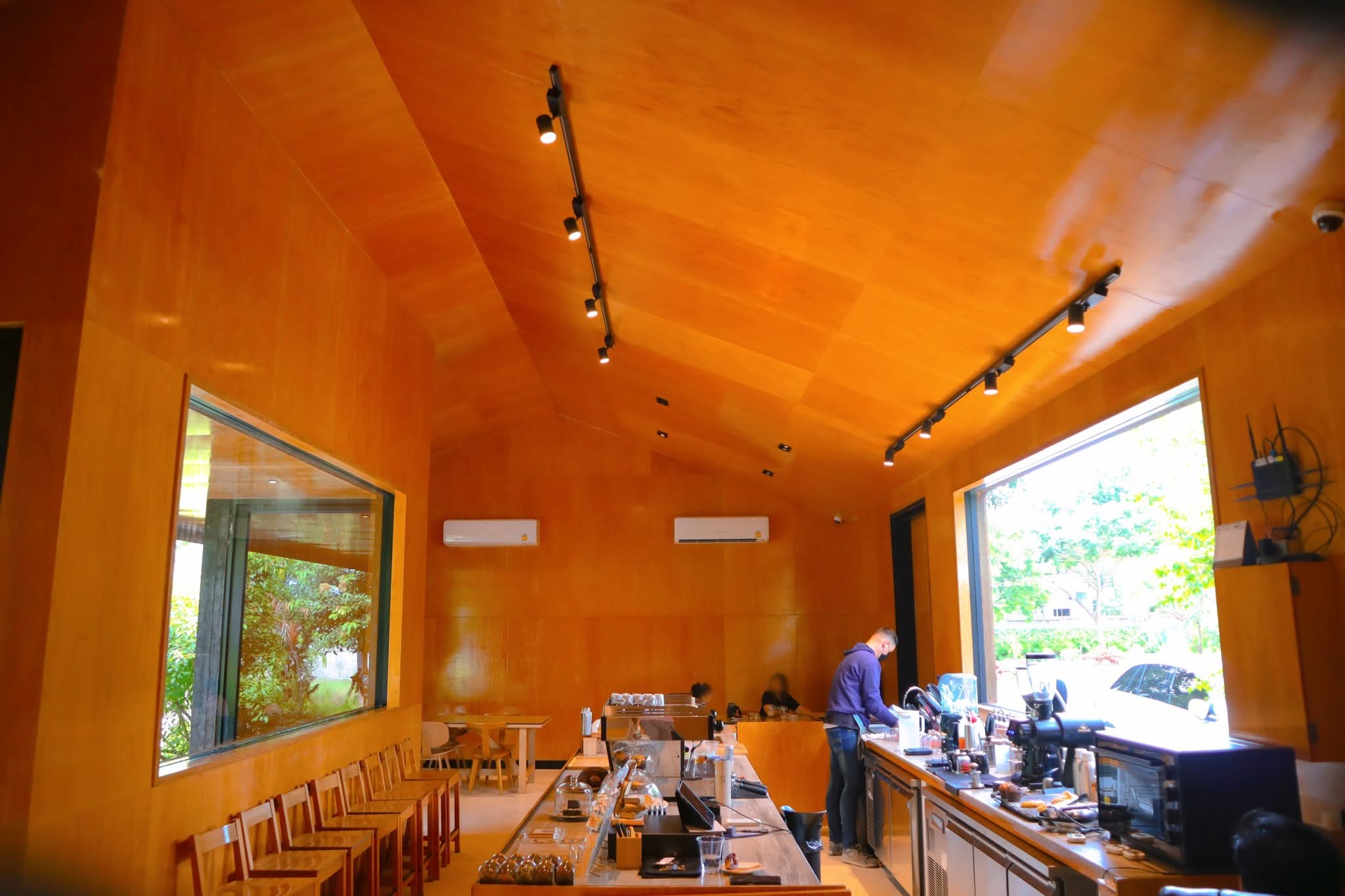 คาเฟ่เล็กๆ ด้านในร้านตกแต่งด้วยไม้ดูอบอุ่น ด้านนอกมีต้นไม้ใหญ่ ให้ร่มเงา นั่งแล้วสูดชื่น ไม่วุ่นวาย