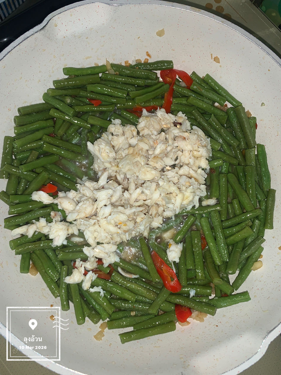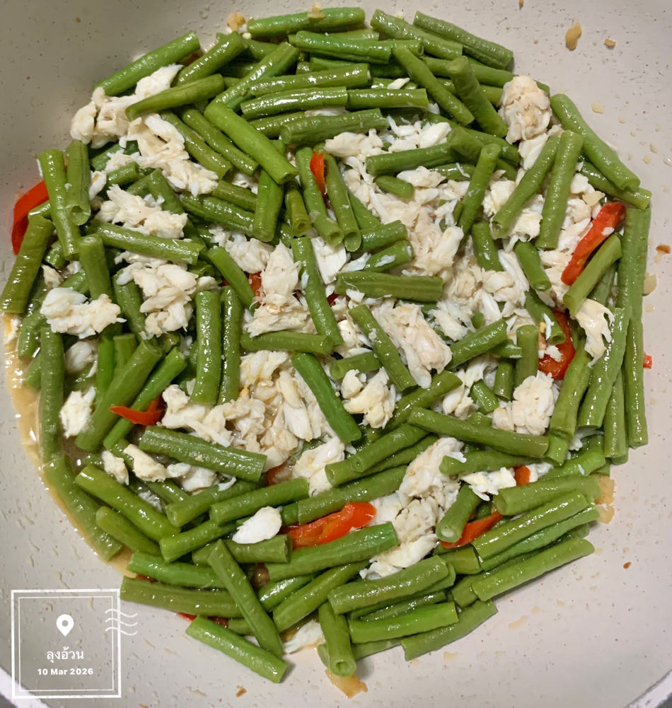 :สูตรเนื้อปูผัดถั่วฝักยาว (ฉบับกินจืด)หัวใจสำคัญคือการดึงความหวานจากเนื้อปูและถั่วฝักยาวออกมาให้มากที่สุด โดยลดการพึ่งพาน้ำปลาหรือซีอิ๊ว
