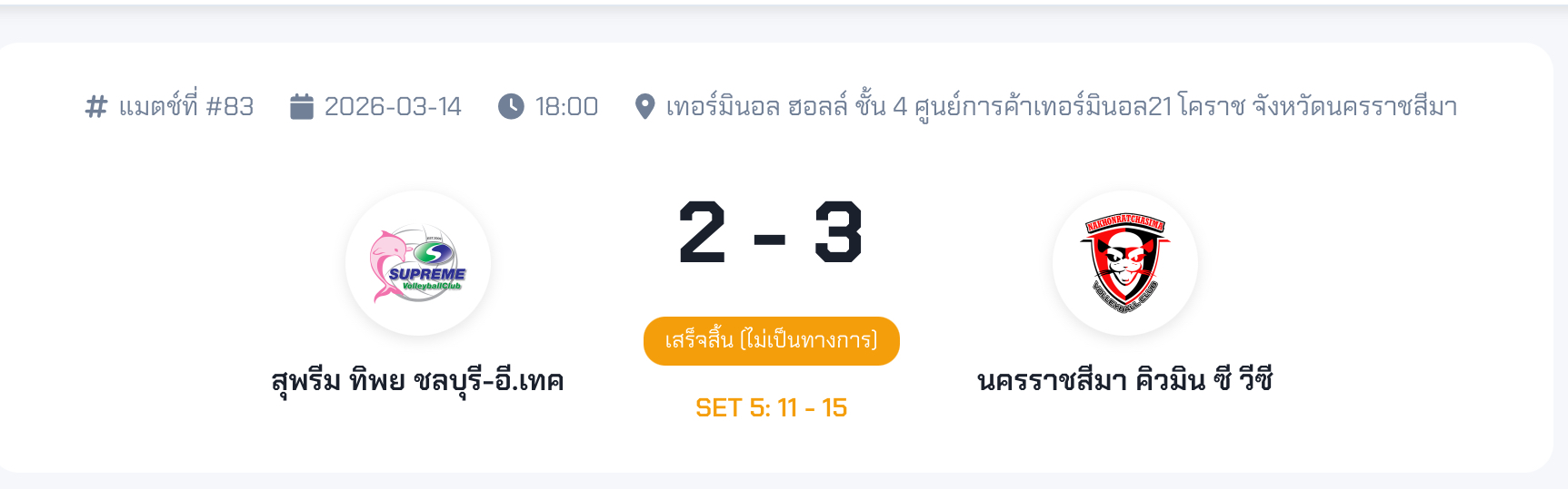 สถิติ โคราช3-2สุพรีม นำ2-0ก่อนเกือบโดนปาด