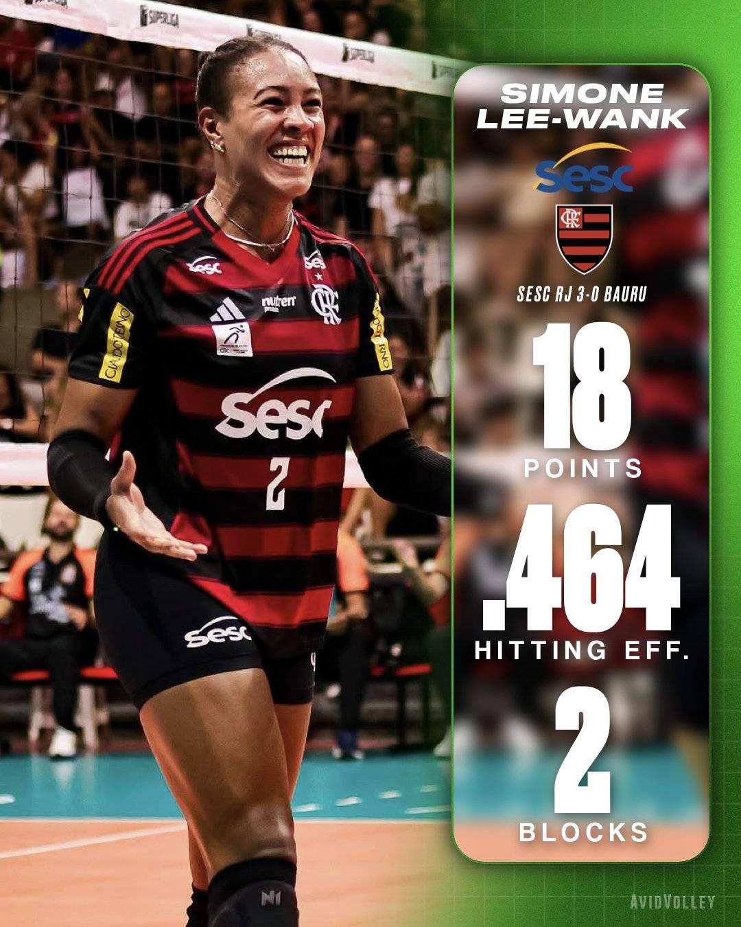 Simone Lee-Wank hasn't missed a beat since returning from injury, hitting a match-high .464 as SESC RJ 🇧🇷picked up a Superliga win over Bauru