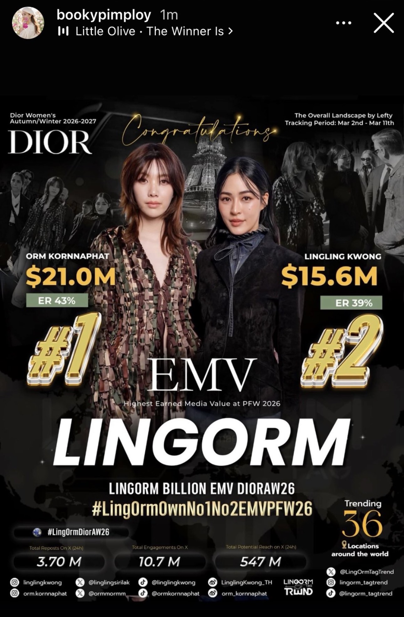 หลิงออม กวาด EMV Top 1 & 2 PFW 2026