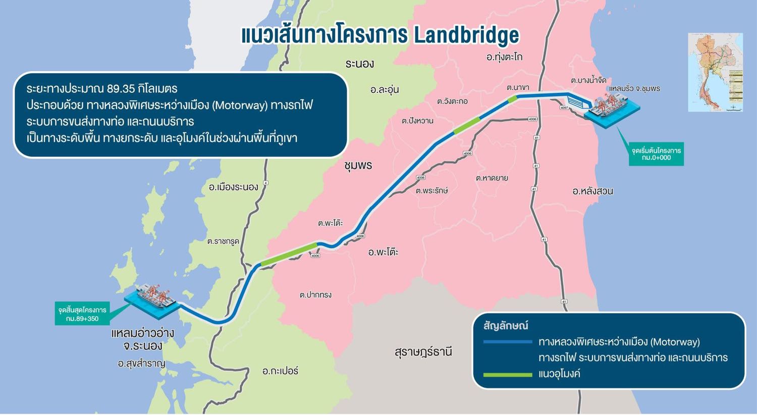 สนข. เตรียมเสนอ เมกะโปรเจค “แลนด์บริดจ์เชื่อมทะเลอันดามัน-อ่าวไทย” (ระนอง - ชุมพร) เข้า ครม.