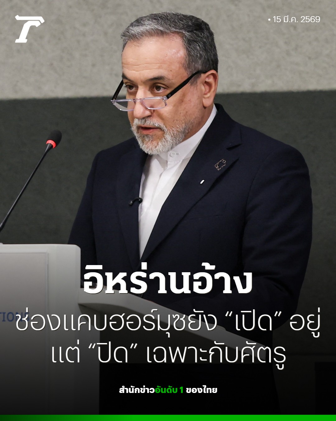 รัฐมนตรีต่างประเทศอิหร่าน บอกกับสื่อว่า ช่องแคบฮอร์มุซยัง “เปิด” อยู่ แต่จะปิดเฉพาะกับ “ศัตรู” ของอิหร่านเท่านั้น ส่วนเรือลำอื่น ๆ ทั้งหมดสามารถผ่านไปได้