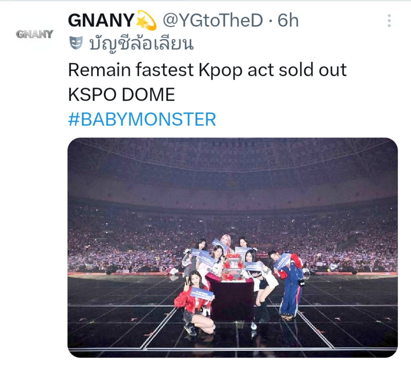 BABYMONSTER เป็นศิลปินเคป๊อปที่สามารถจัดคอนเสิร์ตพร้อม Sold Out ได้ที่ KSPO DOME เร็วที่สุดในประวัติศาสตร์อุตสาหกรรมเคป๊อป เก่งจริง