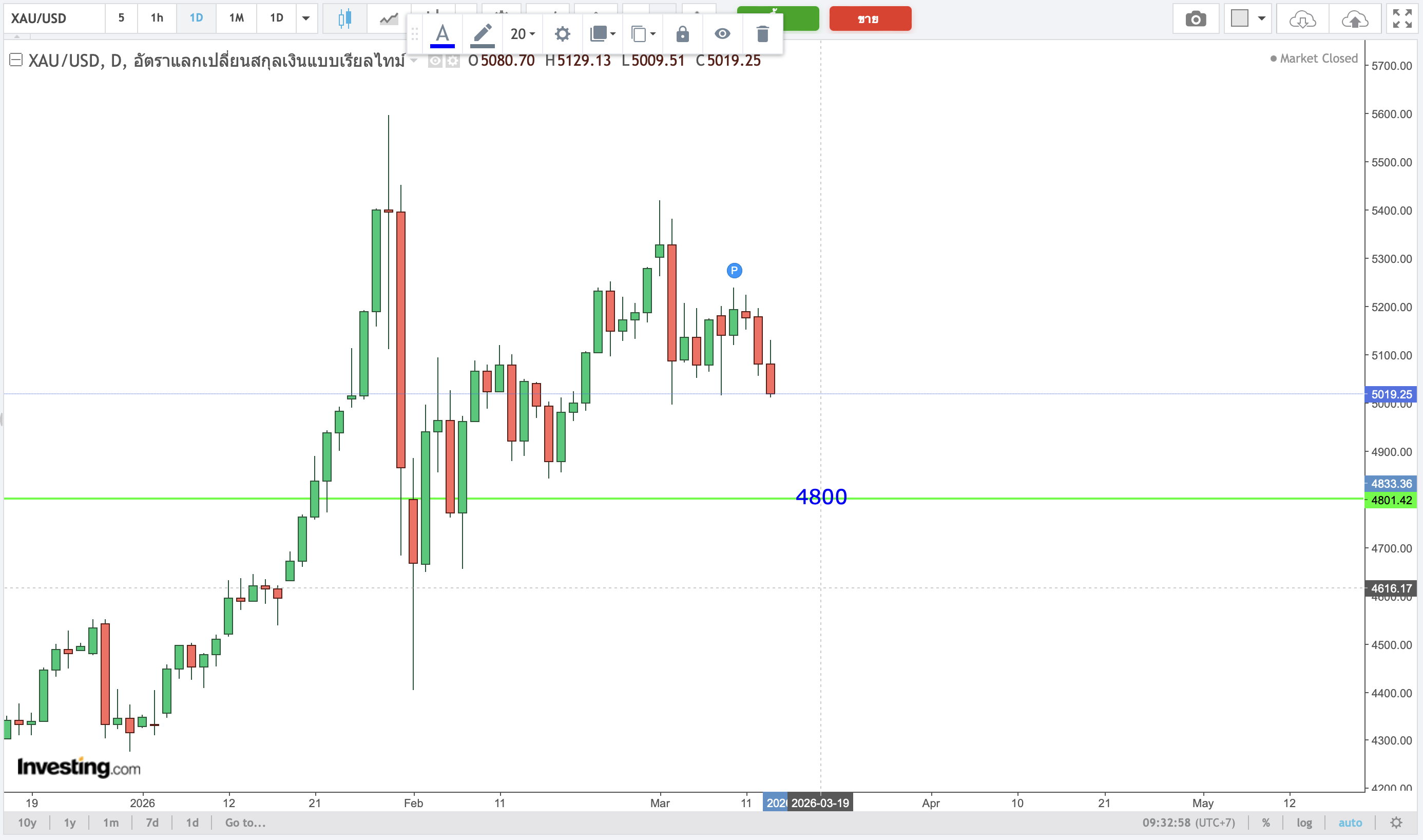 ตอนนี้ราคา 5019.25 ระยะยาวถ้าลงไม่ถึง 4800 ขออยู่นิ่งๆละ