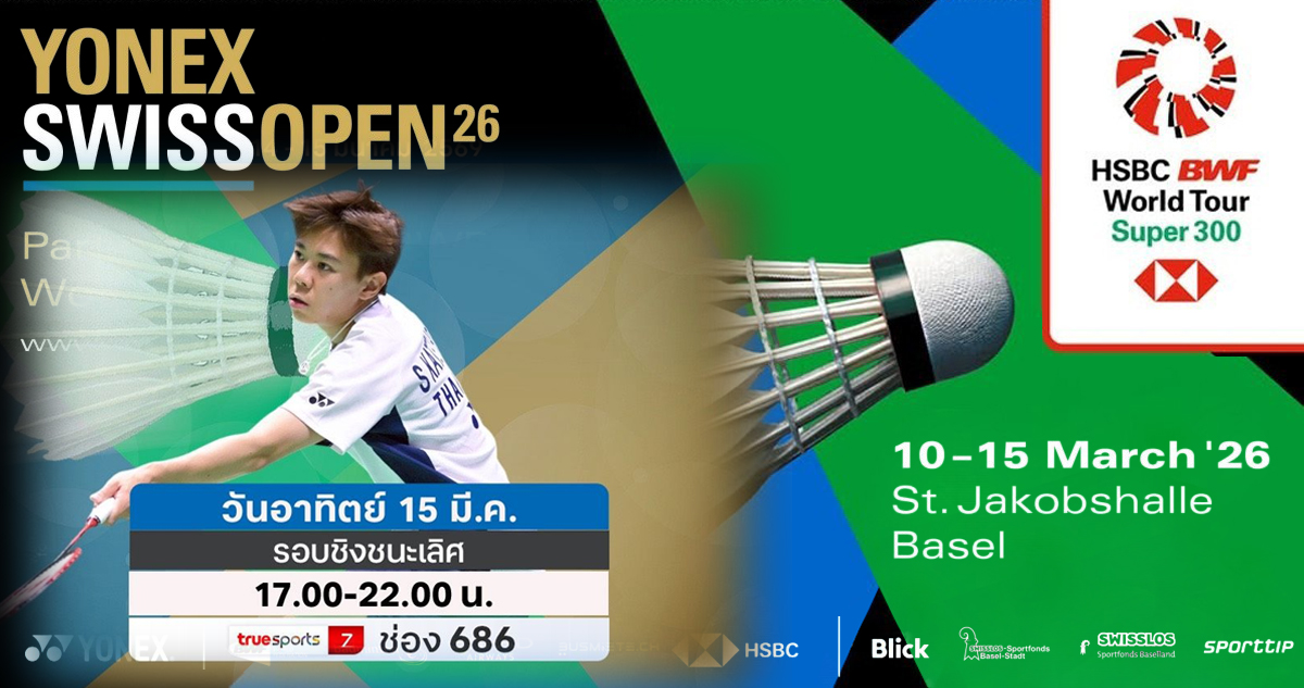 เชียร์สด : แบดมินตัน YONEX Swiss Open 2026 : รอบชิงชนะเลิศ (15 มี.ค. 69) (คู่แรก 17.00 น.)
