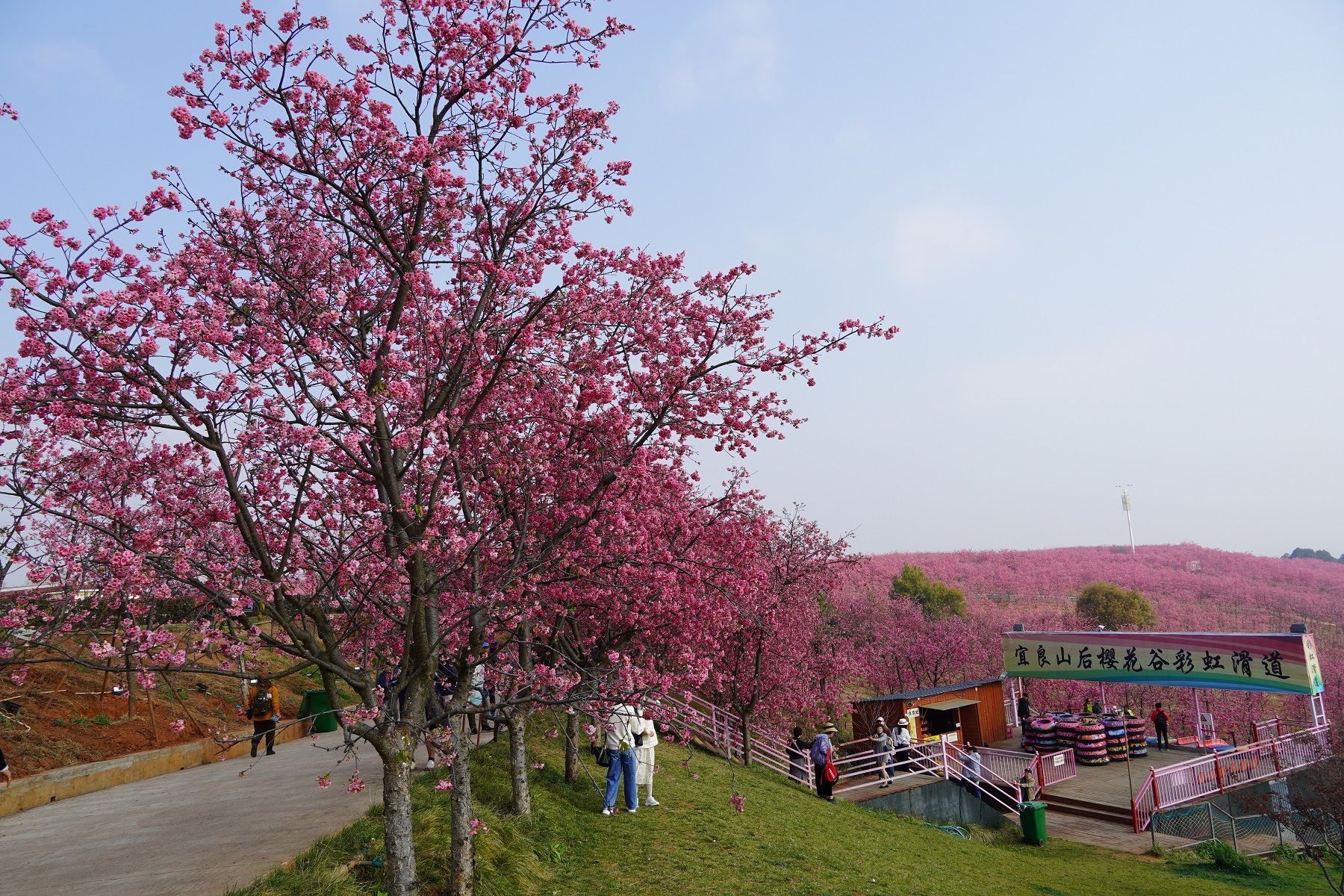 ซากุระในหุบเขาเมืองหยีเหลียง เป็นอุทยานที่มีซากุระสามแสนกว่าต้น นทท.สาว ๆ ไปเดินชมเยอะมาก ๆ ค่ะ