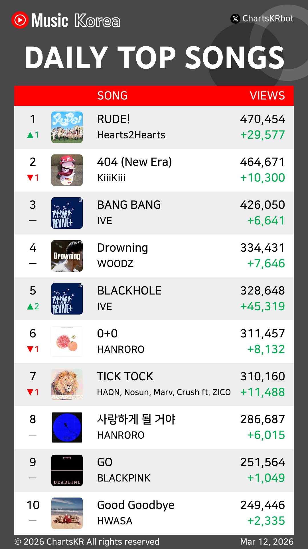 Hearts2Hearts “RUDE!” ขึ้นอันดับ 1 บนชาร์ต YouTube Music Daily Top 20 Songs Korea 🎉
