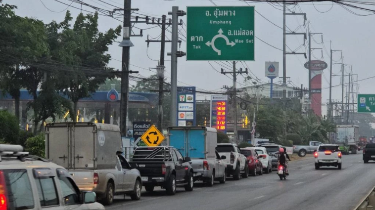 หมดทั้งอำเภอ!ชาวแม่สอด-ใกล้เคียง แห่รอคิวเติมน้ำมันตั้งแต่ตี 5 พม่าเช่ารถไทยเวียนกักตุน ไม่ถึง 3 ชม.หมดทุกปั๊ม