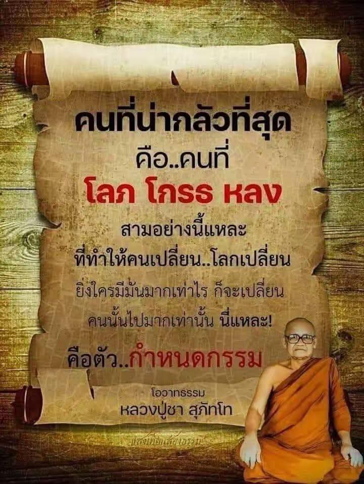 คนที่น่ากลัวที่สุดคือคนที่มีโลภโกรธหลง 3 อย่างนี้ละที่ทําให้คนเปลี่ยนโลกเปลี่ยน นี่ละคือตัวกําหนดกรรม
