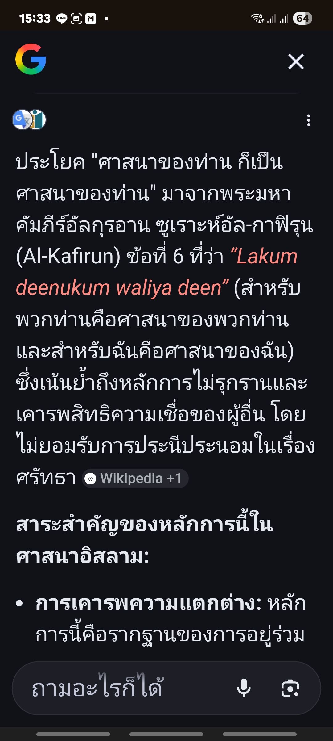 xxxประโยค "ศาสนาของท่าน ก็เป็นศาสนาของท่าน" มาจากพระมหาคัมภีร์อัลกุรอาน ซูเราะห์อัล-กาฟิรุน (Al-Kafirun) ข้อที่ 6 ที่ว่า
