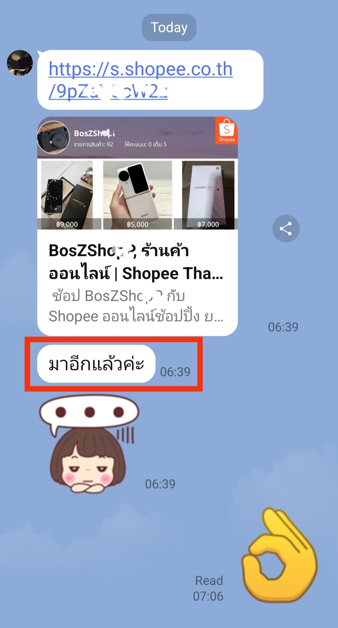 ลองแชท ไป ทางช่องแชท ของ shopee จะเจอ ข้อความอัตโนมัติ ที่ระดม ส่ง