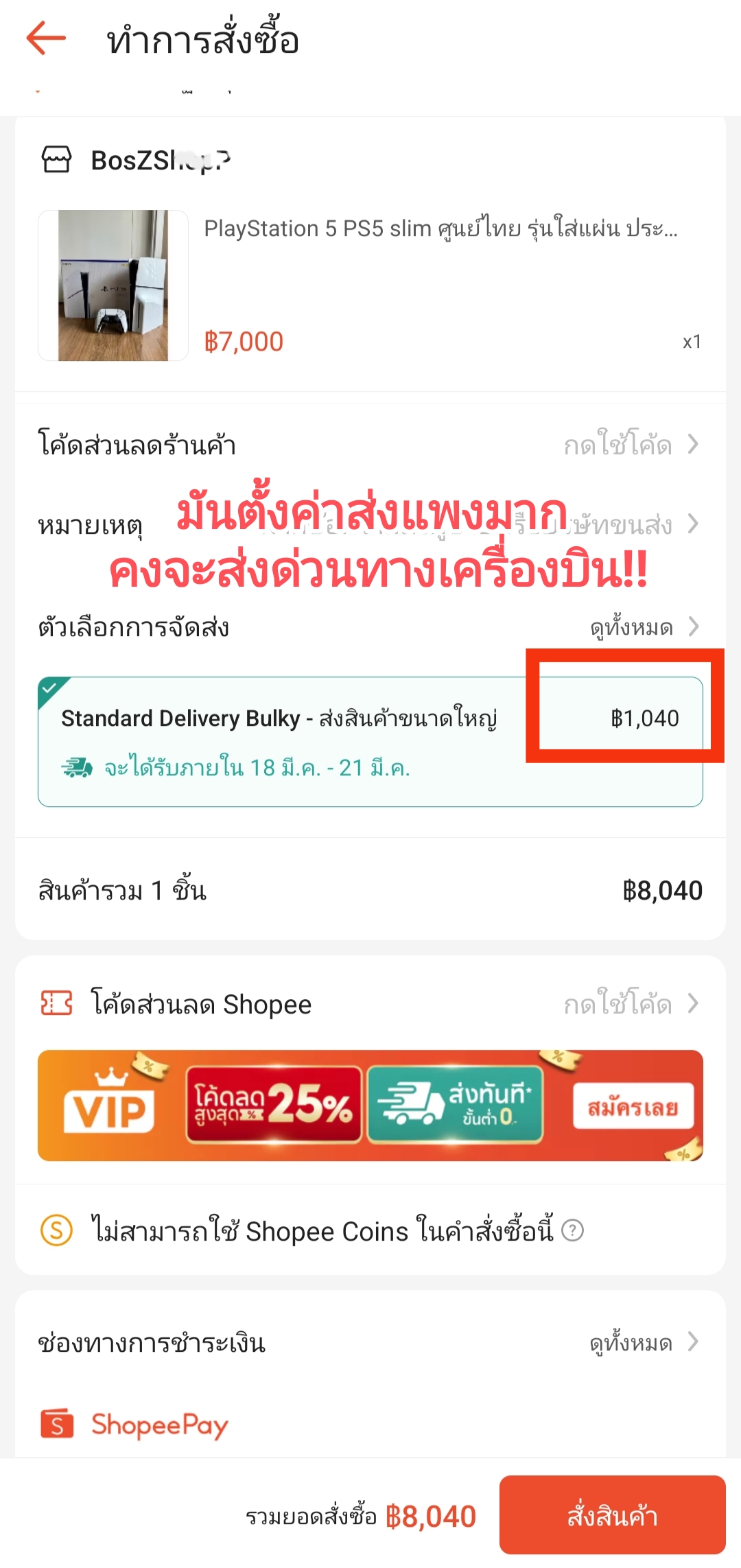 ใน shopee มันตั้งค่าส่งไว้ 1,040 บาท