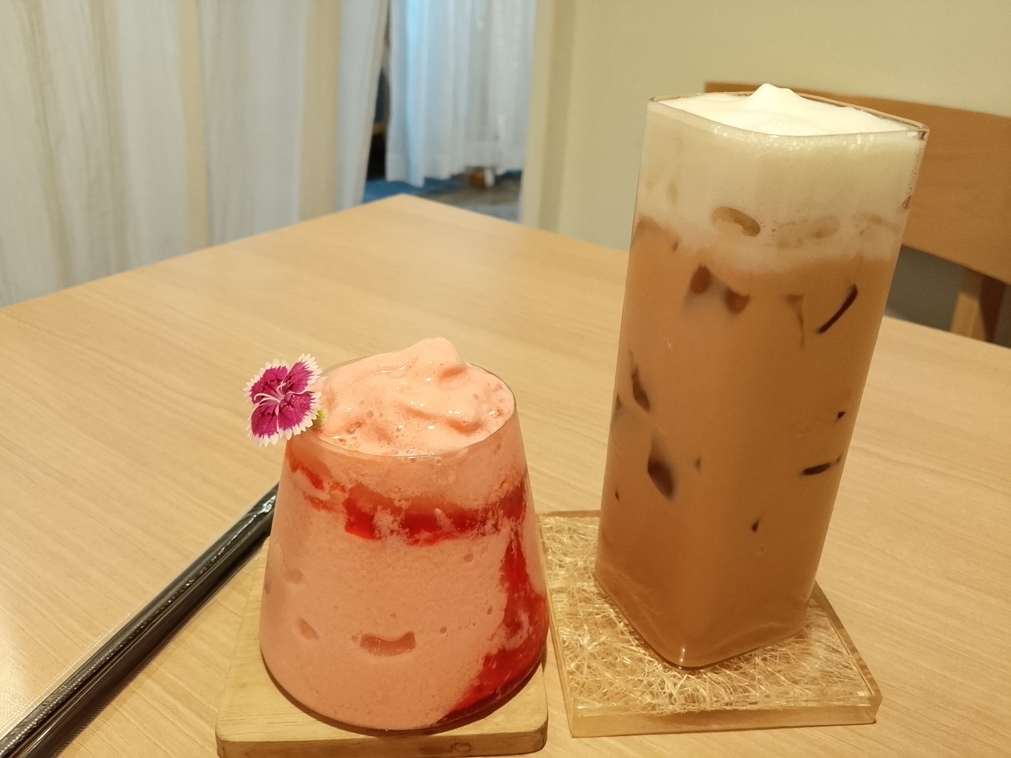มิลเชคสตรอเบอรี่ เย็นชื่นใจ หวานสตรอเบอรี่ไซรัปกับกลิ่นนมเบาๆ ดีต่อใจทั้งสองแบบเลย