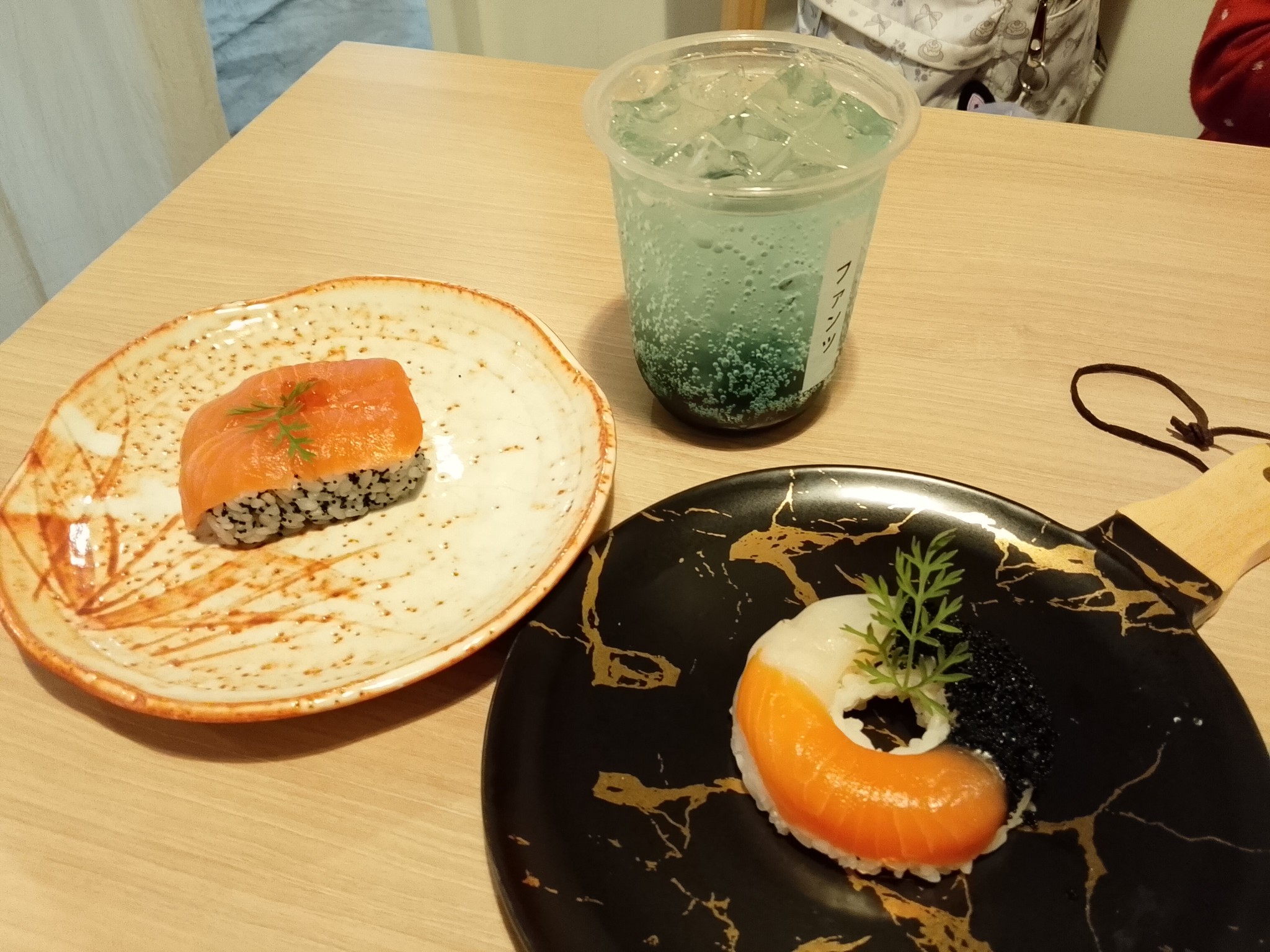 โดนัทซูชิ หน้าแซลมอนโฮดาเตะและไข่กุ้งดำ ไข่หวานอมเค็ม หอยนุ่มนัว ปลารสคาวเบาๆ