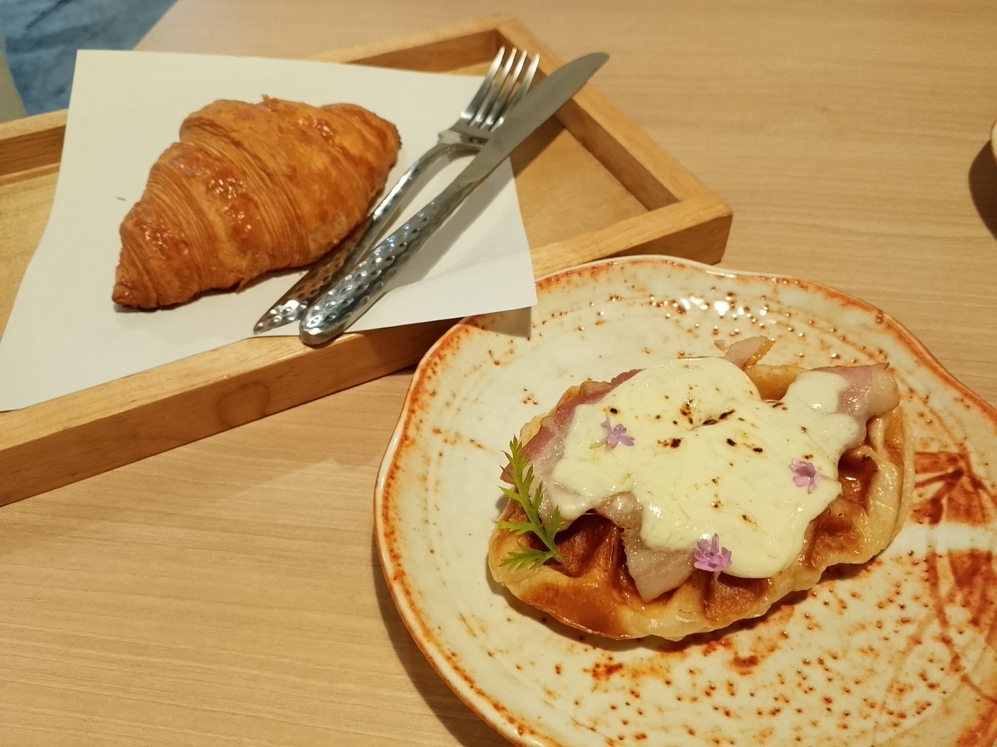 ครัวซอง กรอบร่วน หอมเนยกับน้ำเชื่อมเมเปิ้ลที่ผิวด้วย กินกับกาแฟเข้ากันมากๆ