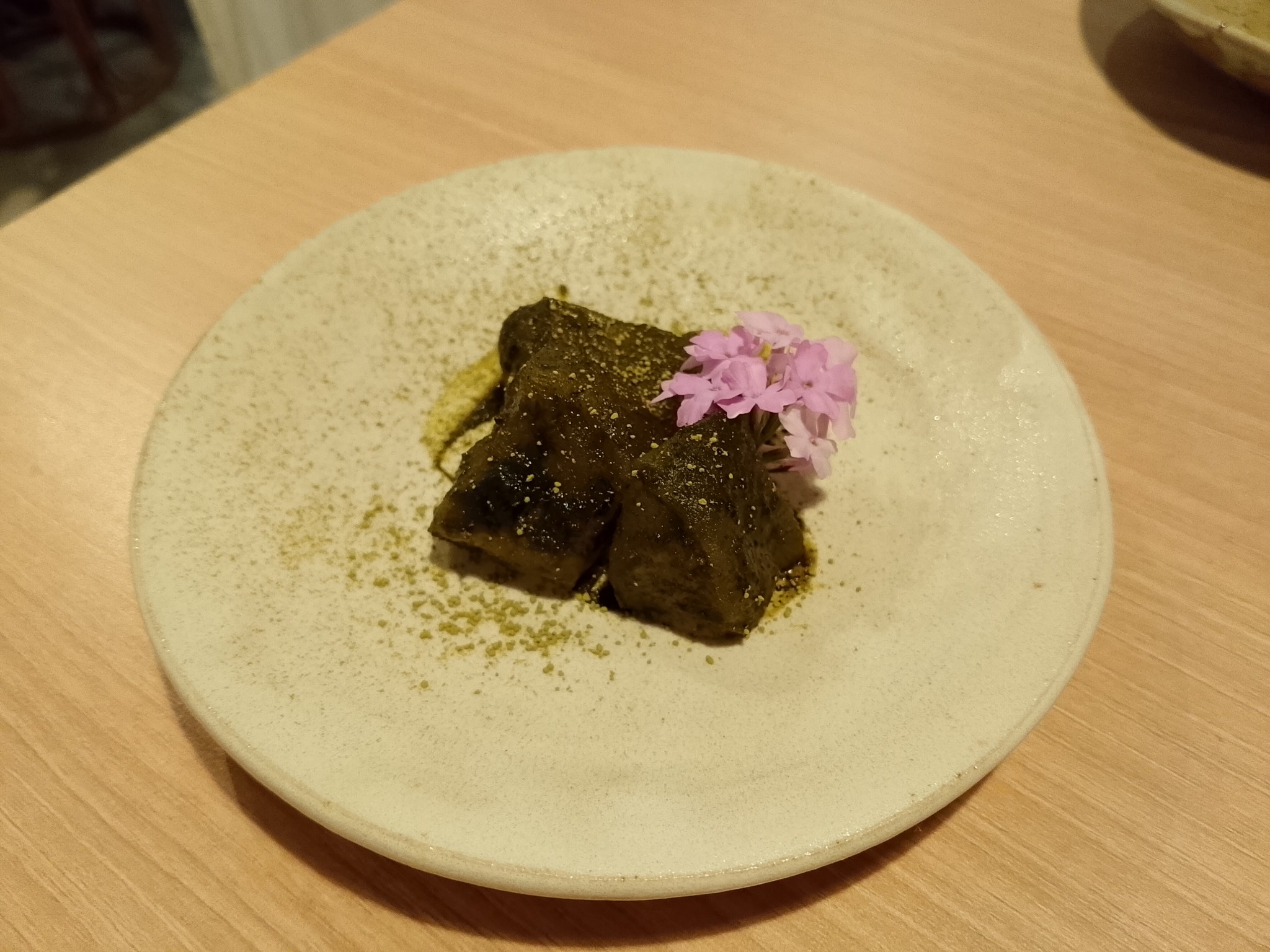 มัฉฉะบราวนี่ เนื้อแป้งแข็งกัดแตกเป็นผงๆยังกับขนมโก๋ รสหวานน้ำตาลแบบเบาๆรสชามาตอนท้าย ไม่ค่อยชอบเท่าไหร่อันนี้