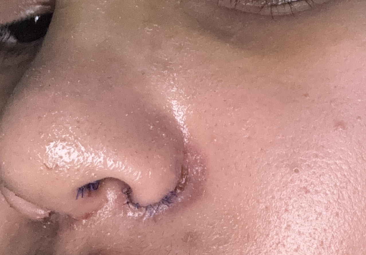 เรื่องมันมีอยู่ว่าเราไปตัดปีกจมูกที่คลีนิคแห่งหนึ่ง หมอเลือกทำวิธีเย็บปีกจมูกให้เล็กลง ไม่มีแผลนอก หมอบอกว่าเขาตัดเนื้อปีกจมูกเราออกแต่เราคิดว่าไม่อ่ะ เราทำมาได้ 15 วัน พอเราส่องดูข้างในจมูก เราเห็นแ