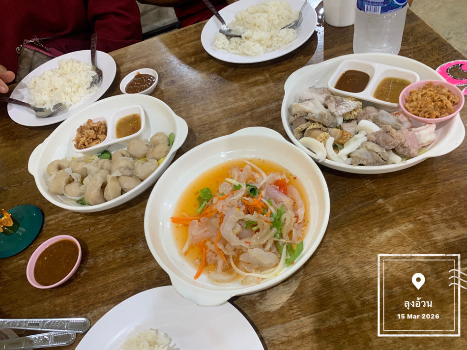 [TripNote] ลุงเล้า: 15 มีนา: ยำแมงกะพรุน, เกี๊ยวปลาลวกจิ้ม, รวมมิตรลวกจิ้ม, ต้มยำน้ำใสกุ้งหมึก, หมึกบด