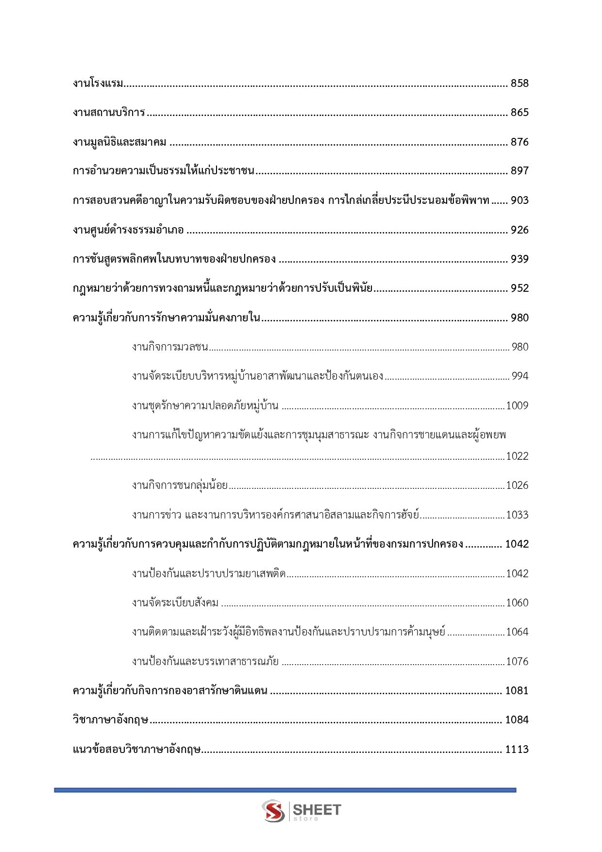 - ความรู้เกี่ยวกับการรักษาความมั่นคงภายใน ได้แก่ งานกิจการมวลชน งานจัดระเบียบบริหารหมู่บ้านอาสาพัฒนาและป้องกันตนเอง งานชุดรักษาความปลอดภัยหมู่บ้าน งานการแก้ไขปัญหาความขัดแย้งและการชุมนุมสาธารณะ งานกิจการชายแดนและผู้อพยพ งานกิจการชนกลุ่มน้อย งานการข่าว และงานการบริหารองค์กรศาสนาอิสลามและกิจการฮัจย์