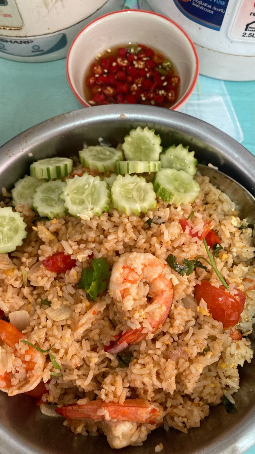 สวัสดีคร้าา ช่วงนี้อากาศร้อน พยายามใจเย็นๆกันนะคะ อะไรยอมยอมกันได้ ก็อย่าไปยอมกันค่ะ (อิอิ )หยอกๆ วันนี้อากาศร้อน ขี้เกียจจะทำอะไรทาน เลยทำข้าวผัดกุ้งไปเลยค่ะ1 กะละมัง กินกันทั้งพ่อ แม่ ลูก อุ่นทานเช้า ทานเที่ยงเลยค่ะ แม่บ้านขี้เกียจ ทานคู่กับแตงกวา พริกน้ำปลา แค่นี้พอค่ะ บ้านไหนทานอะไรกันค่ะวันนี้ 🥰🥰