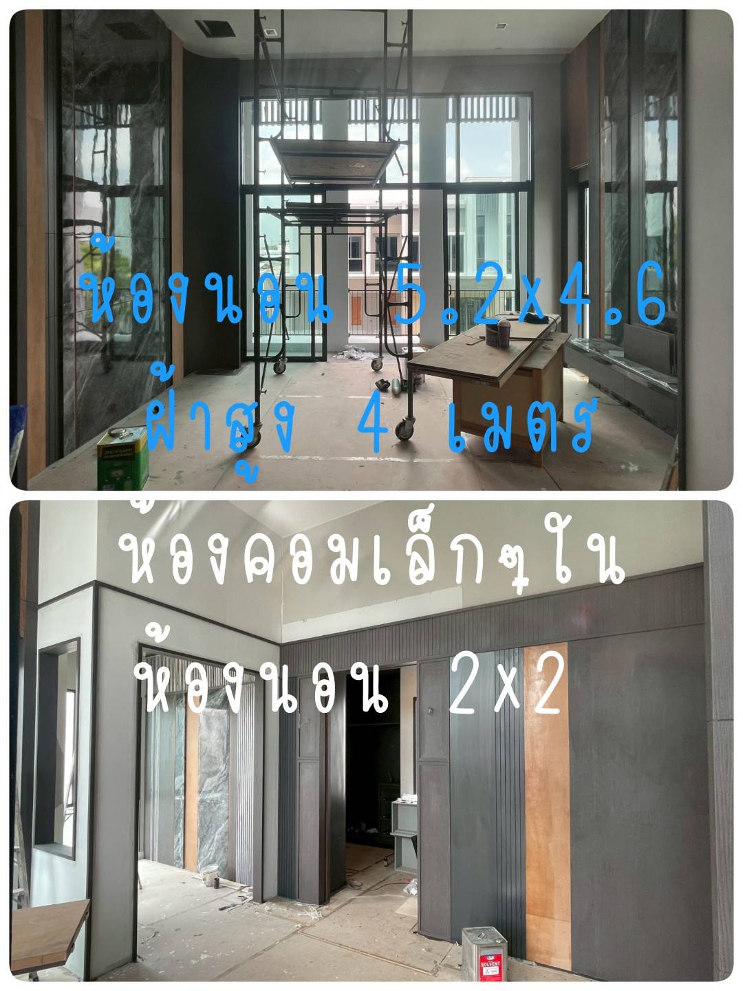 3.ห้องนอน Master 5.2 x 4.6 แต่ฝ้าสูง 4 เมตร + ห้องคอมเล็ก 2 x 2 ฝ้าปกติไม่สูง ตู้เสื้อผ้ากั้นห้องไม่นับมารวม