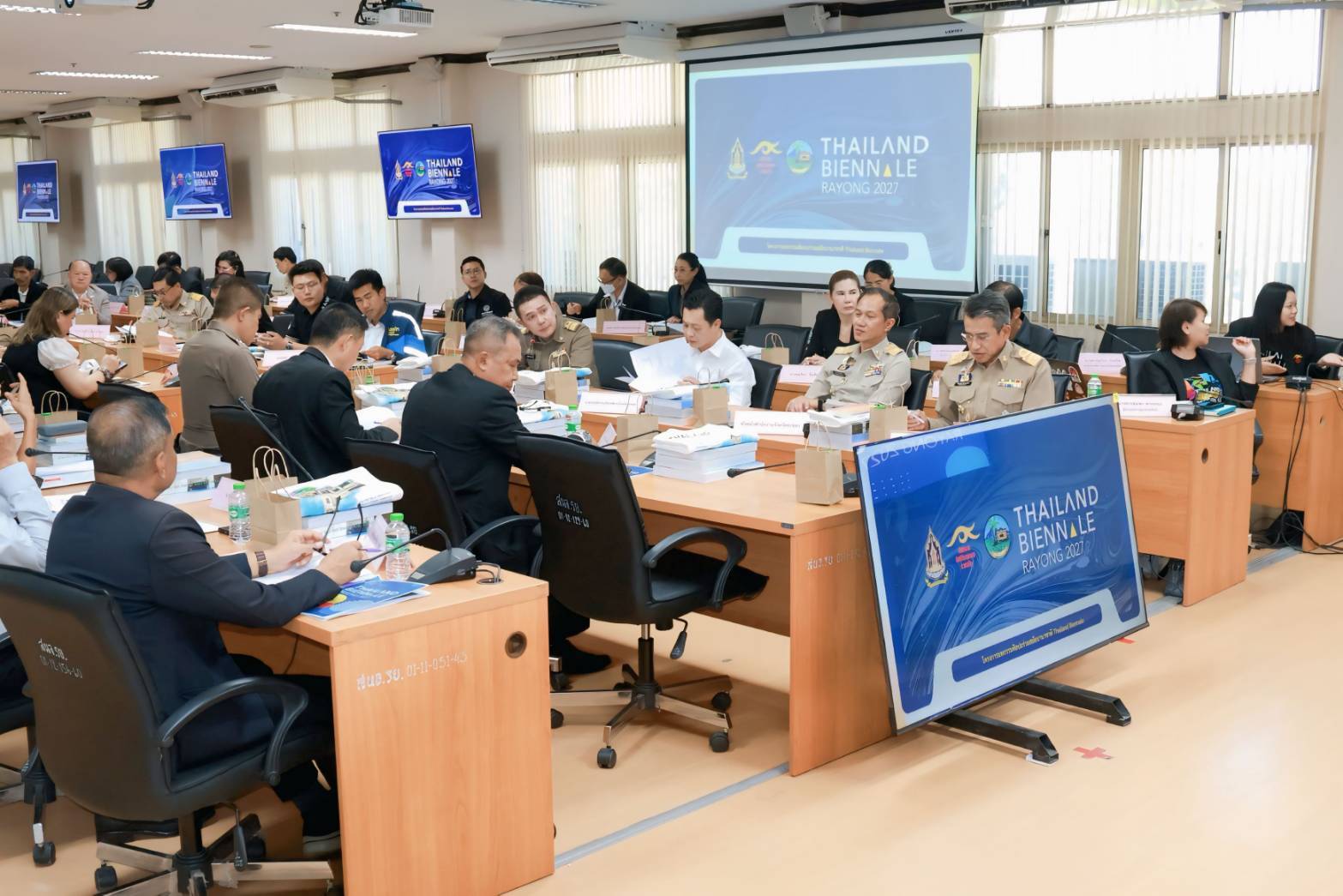 วันที่ 2 มีนาคม 2569 เวลา 13.30 น. นายไตรภพ วงศ์ไตรรัตน์ ผู้ว่าราชการจังหวัดระยอง เป็นประธานประชุมการจัดงานมหกรรมศิลปะร่วมสมัยนานาชาติ Thailand Biennale, Rayong 2027 ครั้งที่ 1/2569 พร้อมด้วยนางเกษร กำเหนิดเพ็ชร ผู้อำนวยการสำนักงานศิลปวัฒนธรรมร่วมสมัย นายสาธิต ปิตุเดชะ อดีตสมาชิกสภาผู้แทนราษฎรจังหวัดระยอง นายวรวุฒิ ด่านสมพงศ์ วัฒนธรรมจังหวัดระยอง นางสาวสมพร พานทอง ผู้อำนวยการศูนย์หอศิลป์ หัวหน้าส่วนราชการจังหวัดระยอง และเครือข่ายศิลปินที่เกี่ยวข้อง เข้าร่วมฟังแนวทางการขับเคลื่อนงานมหกรรมศิลปะร่วมสมัยนานาชาติ Thailand Biennale, Rayong 2027 การแต่งตั้งคณะกรรมการของโครงการ การจัดเตรียมบุคลากร การจัดเตรียมพื้นที่จัดแสดงงาน การขนส่งและคมนาคม การจัดเตรียมงบประมาณดำเนินงาน การระดมความร่วมมือและสนับสนุนงบประมาณร่วมกับหน่วยงานภาคเอกชน ณ ห้องภักดีศรีสงคราม ศาลากลางจังหวัดระยอง