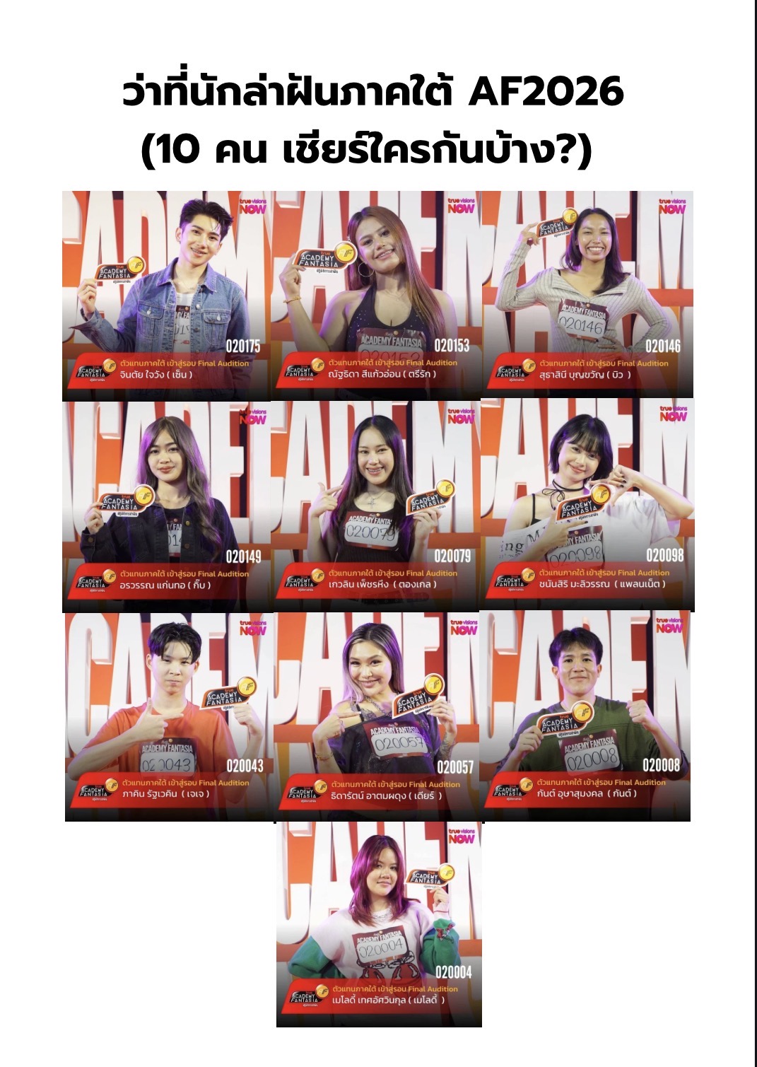 นี่คือว่าที่นักล่าฝันตัวแทนภาคใต้ AF2026 ทั้ง 10 คน
