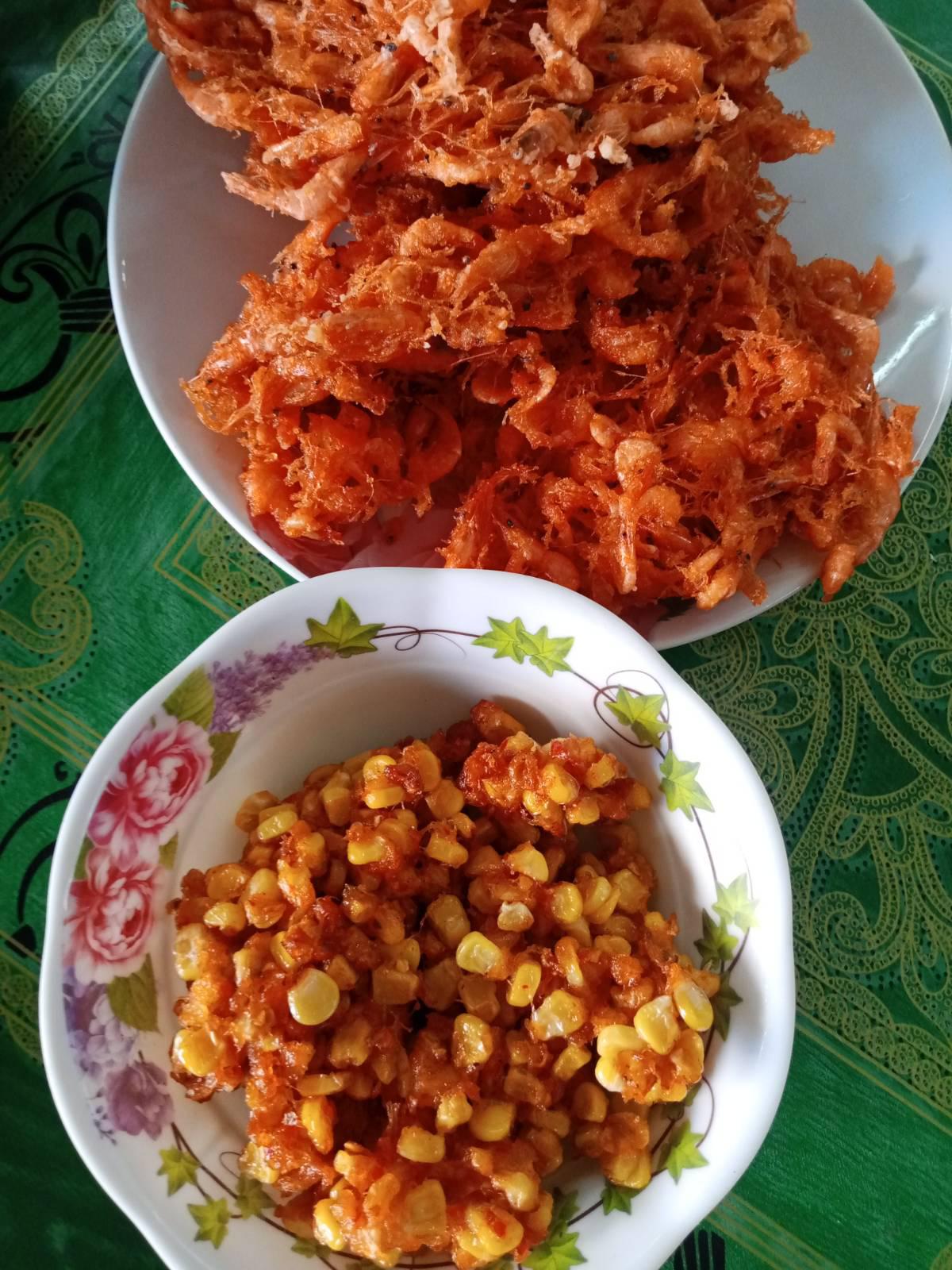 กุ้งฝอยทอด+ ข้าวโพดทอด 🦐🌽