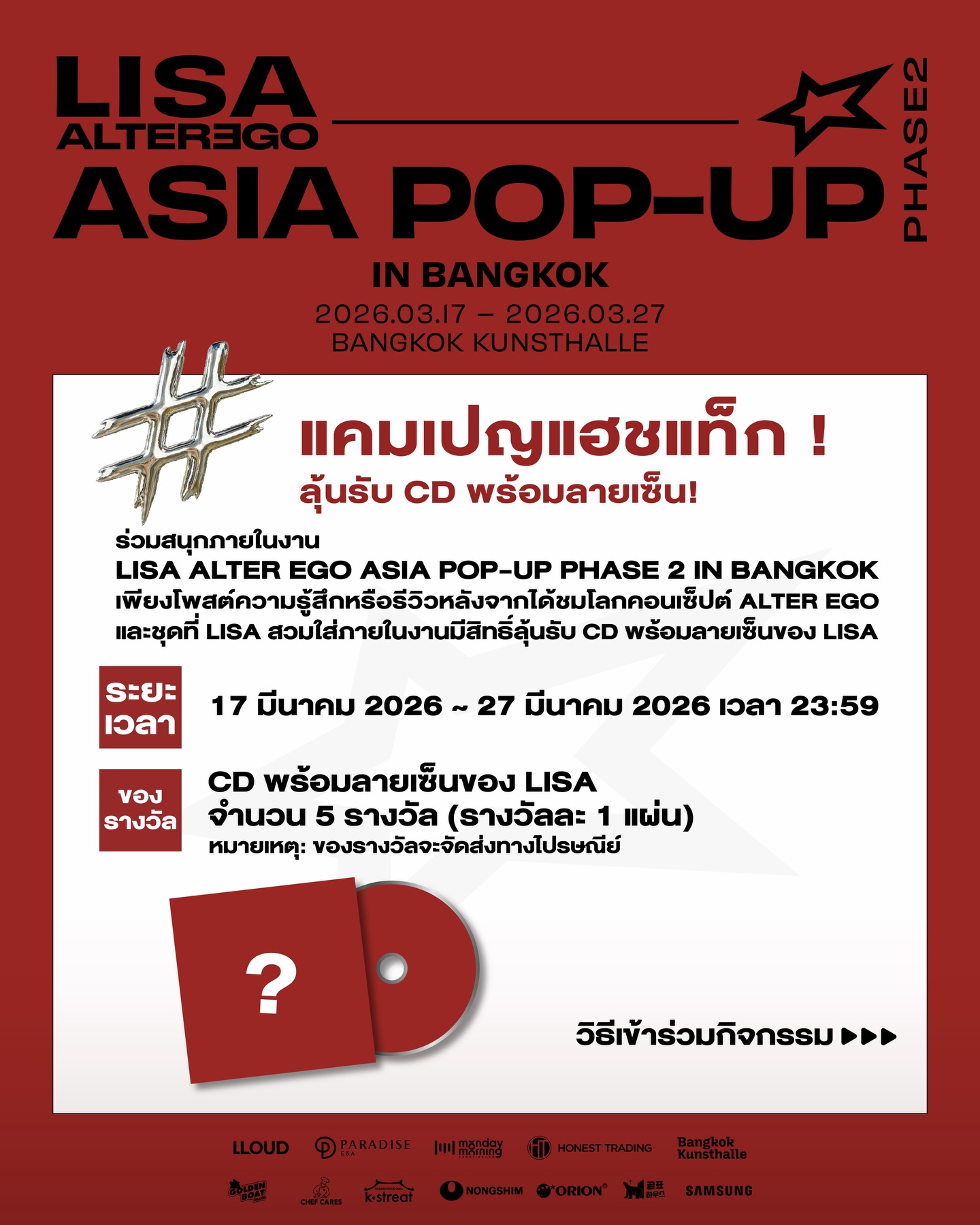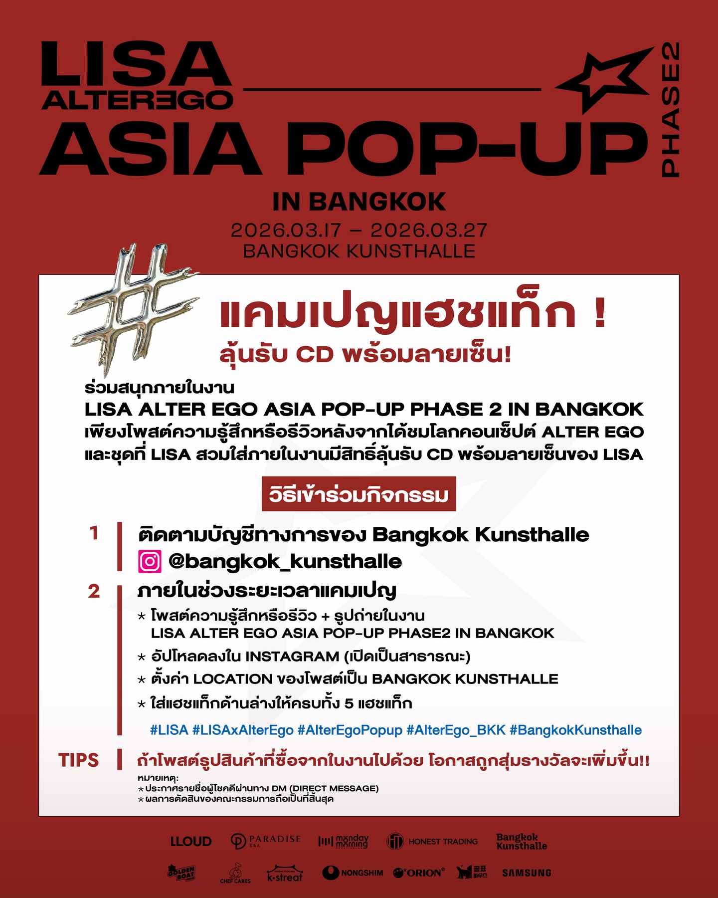 ※ โพสต์ความรู้สึกหรือรีวิว + รูปถ่ายในงาน LISA ALTER EGO ASIA POP-UP PHASE2 IN BANGKOK