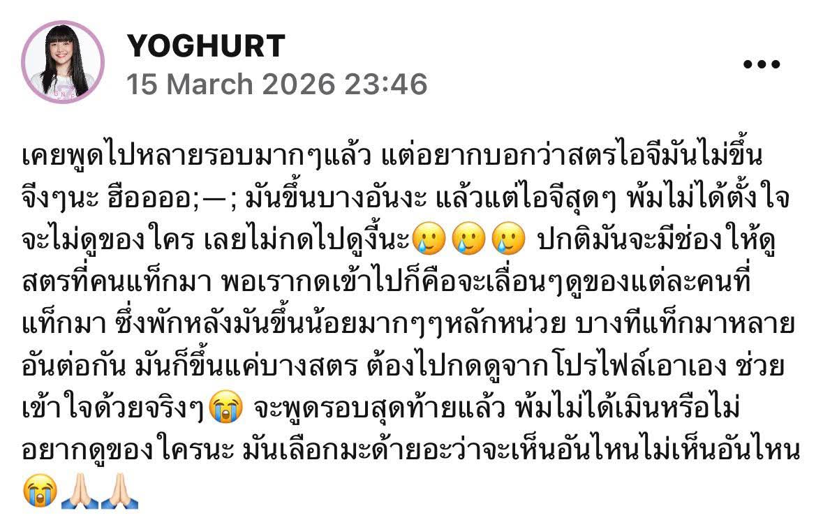 ส่วนโยเกิร์ตออกมาโวยที่มีแฟนคลับออกมาด่าว่าทำไมไม่ดูสตอรี่ที่ลงจะต่อสัญญาก็ต้องเจอกับวังวนแบบนี้