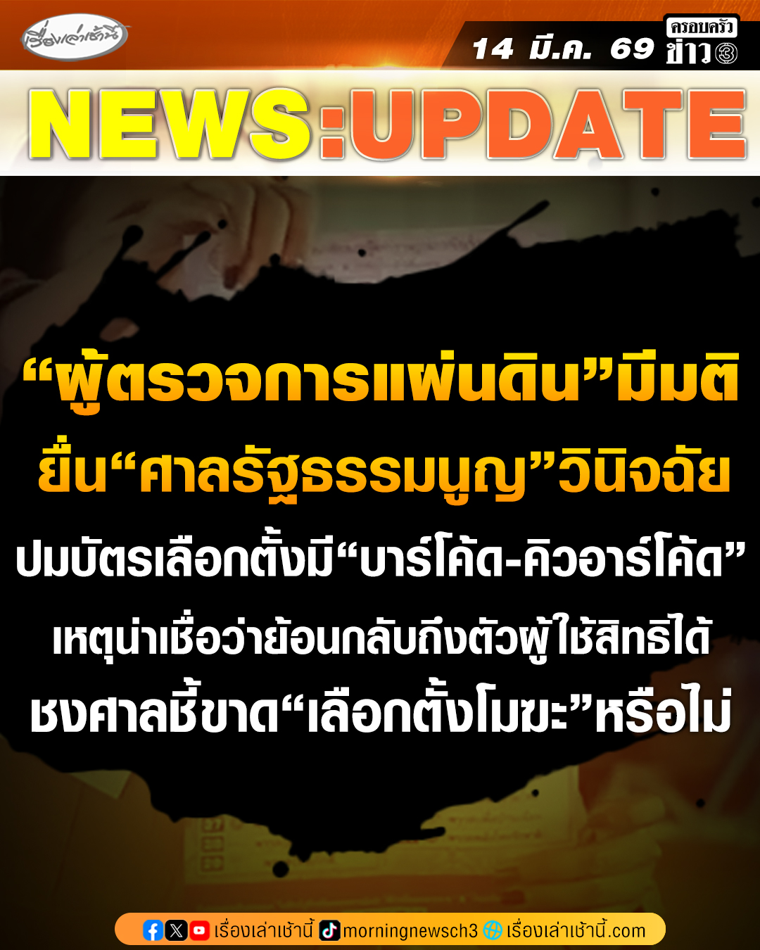 ด่วน! ผู้ตรวจการฯ มีมติส่งศาลรธน.วินิจฉัยปมบาร์โค้ด-คิวอาร์โค้ดบัตรเลือกตั้ง ขัดรธน.https://www.matichon.co.th/politics/news_5633590..ด่วน! ผู้ตรวจการแผ่นดิน มีมติส่งศาลรธน. วินิจฉัยปมบาร์โค้ด บนบัตรเ