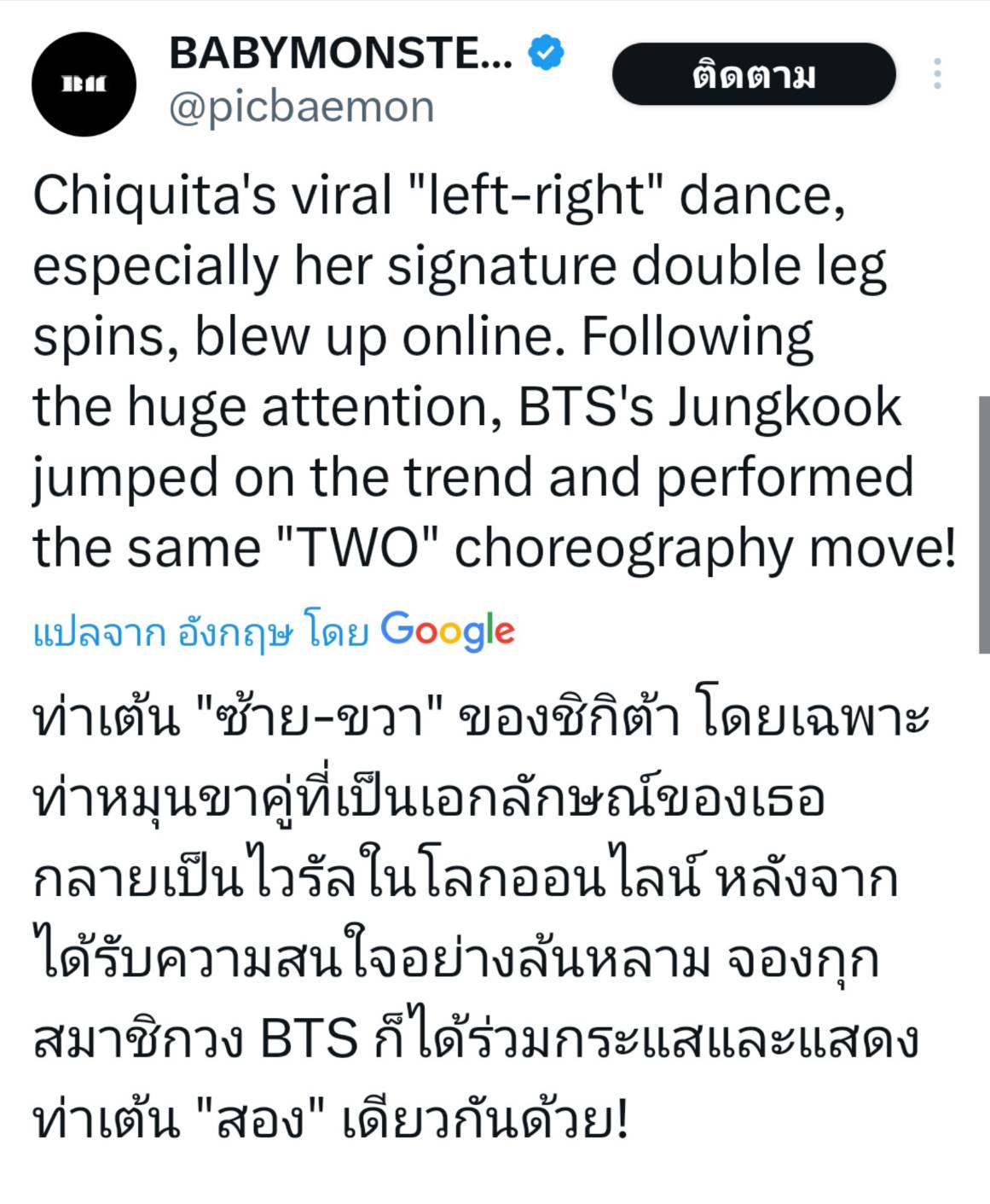 CHIQUITA Trendsetter ครั้งที่แล้วนักออกแบบท่าเต้นระดับโลก คราวนี้เป็น Jung Kook BTS มาใช้ท่าเต้นของ CHIQUITA ในเพลง two ไม่ได้อะไร
