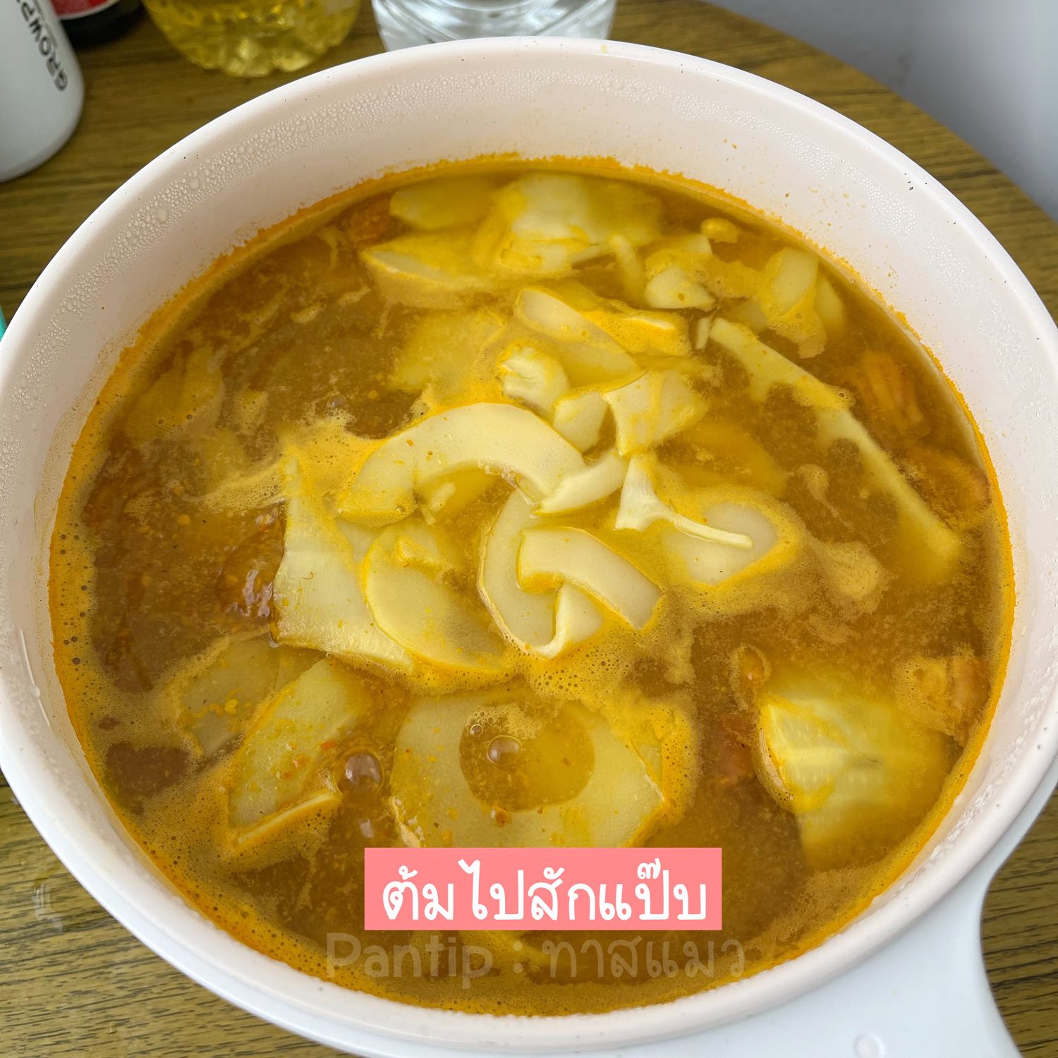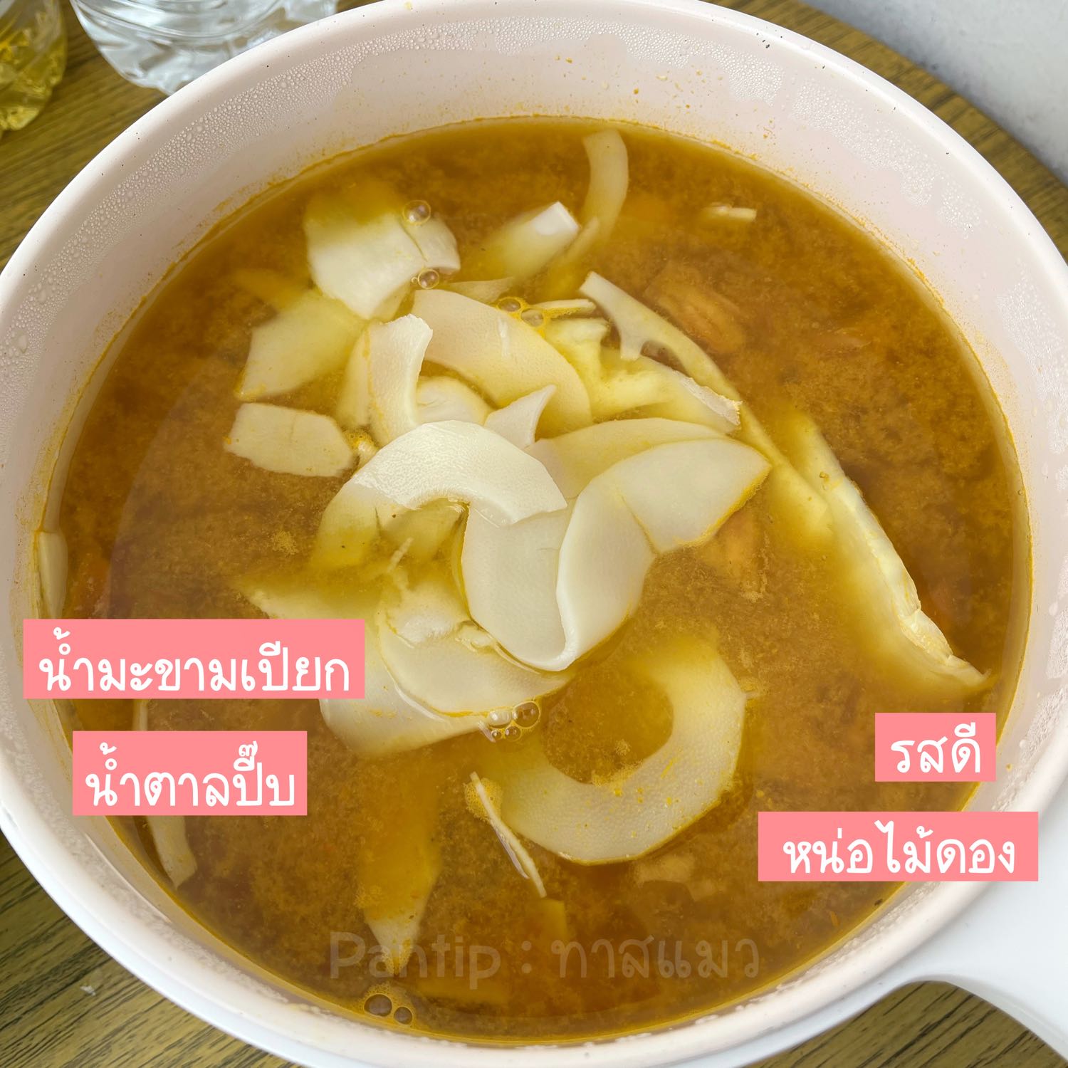 3.) ใส่หน่อไม้ / ปรุงรสด้วย น้ำมะขามเปียก น้ำตาลปี๊บ รสดี ต้มไปแป๊บนึง