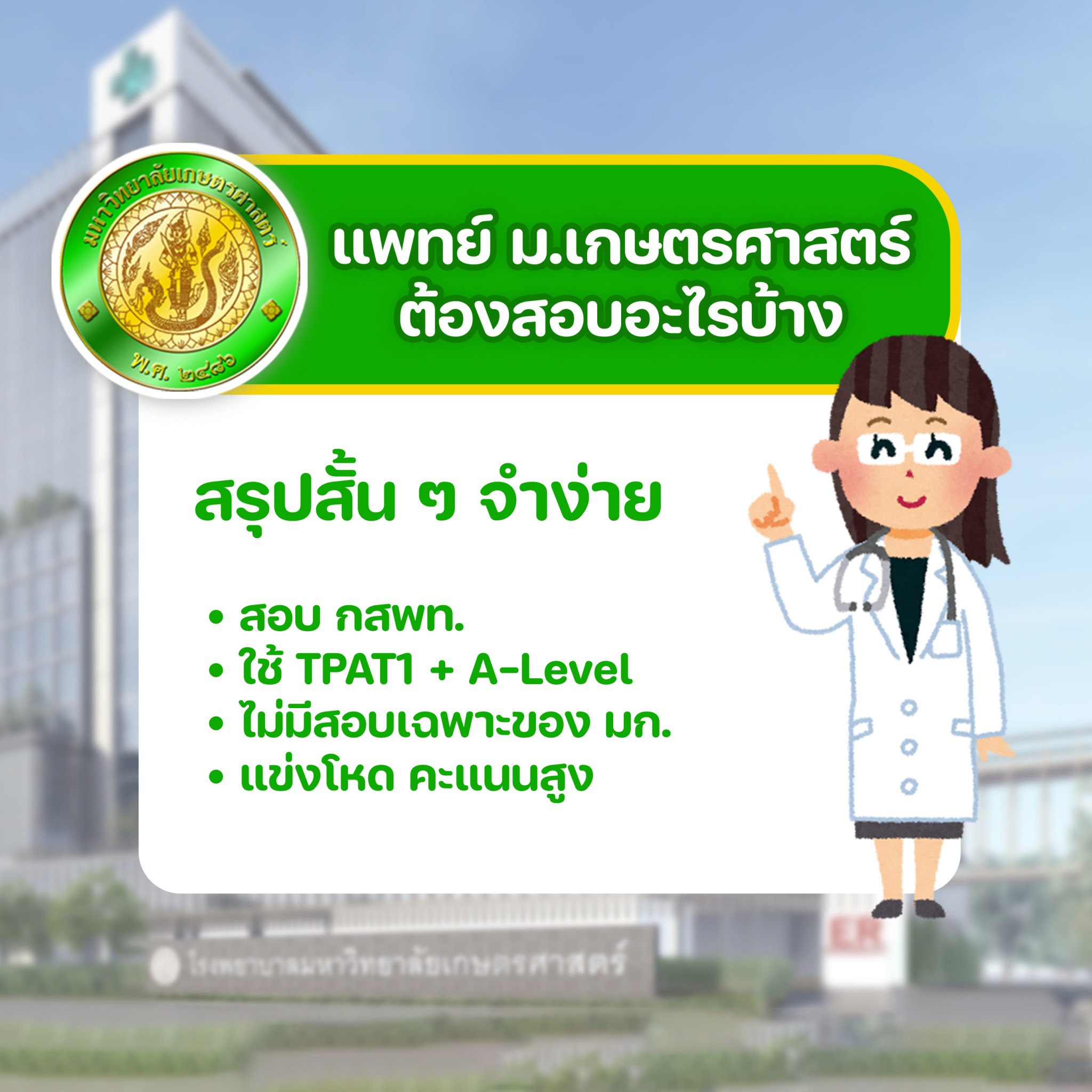 เจาะลึกเกณฑ์การรับสมัคร "แพทย์ มก." (รอบ กสพท / TCAS)