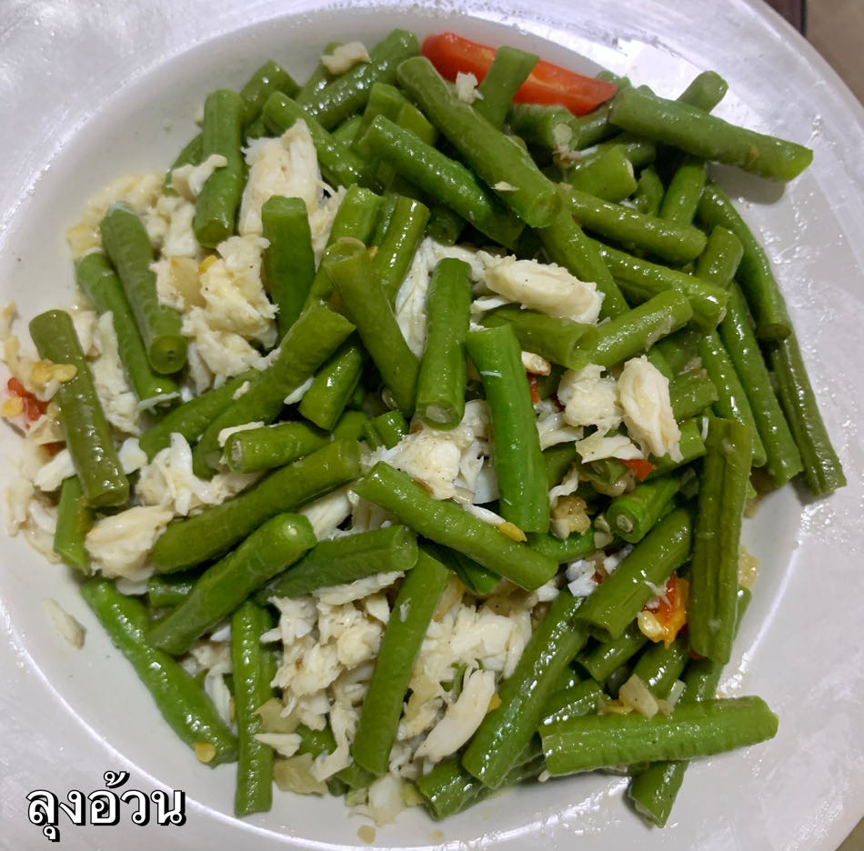 ผัดถั่วฝักยาวใส่เนื้อปู