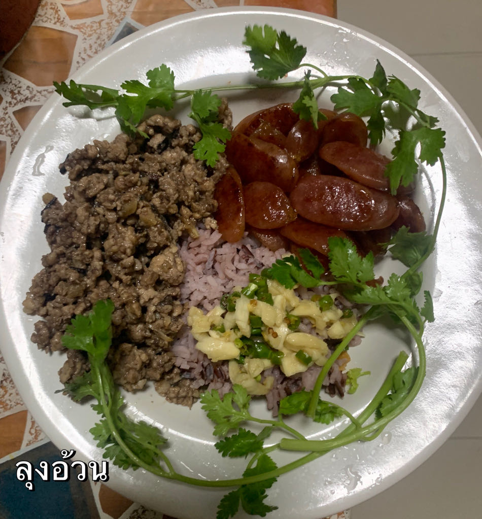 ข้าวราดหมูสับผัดหนำเลี้ยบ & กุนเชียงทอดน้ำ