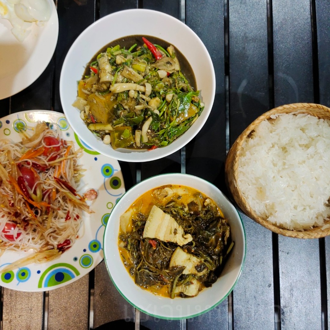 เพื่อนบ้านหลังข้างๆ ไลน์มาชวนกินมื้อเย็นด้วยกัน จัดไปครับ เอาแกงขี้เหล็กไปร่วมด้วย ฮ่าๆ
