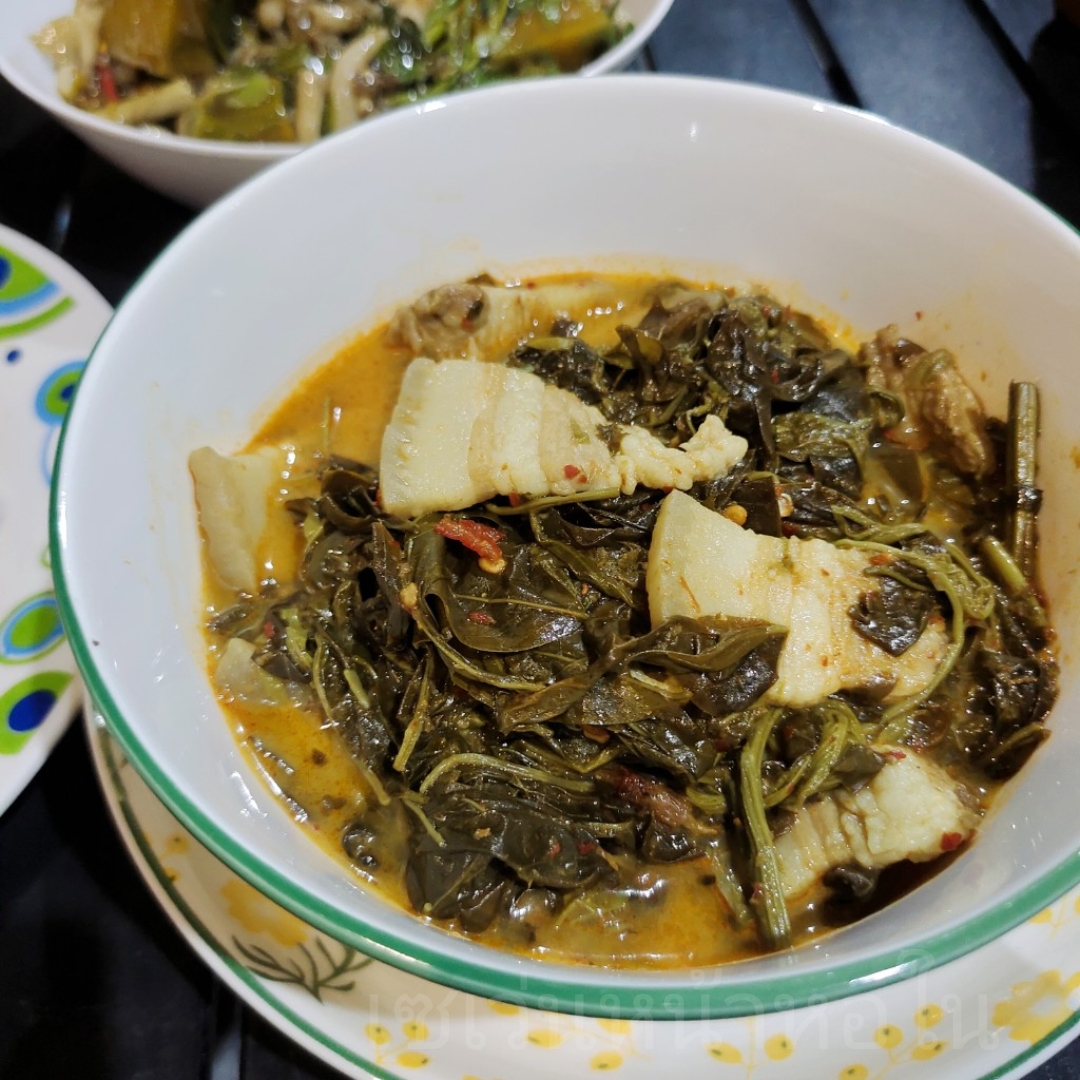 แกงขี้เหล็กใส่หมูสามชั้น แบบแกงกะทิ อร่อยมาก ไม่ขมมาก