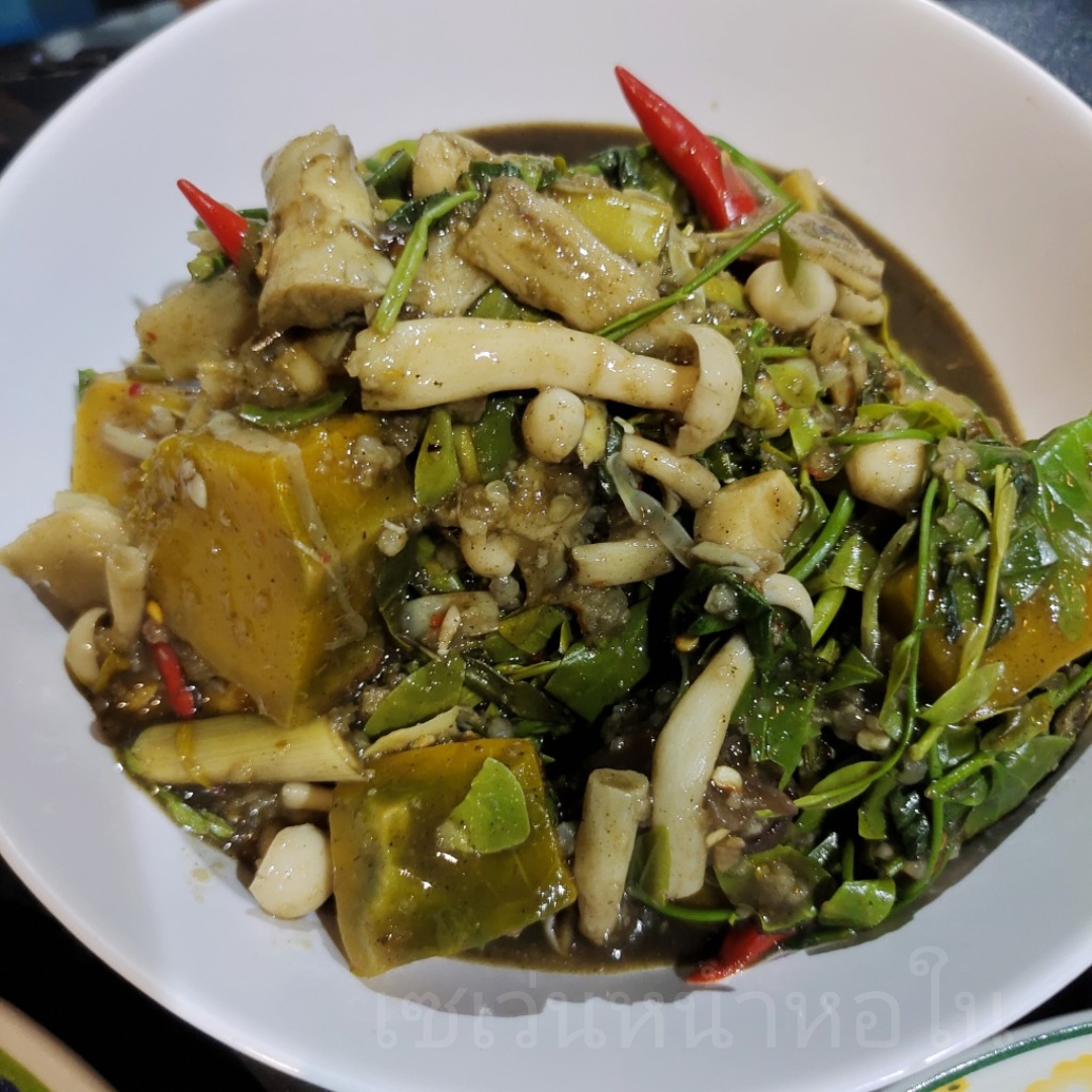 เพื่อนบ้านทำแกงเห็ดใส่ผักหวาน ฟักทองและหน่อไม้ อร่อยแซ่บ