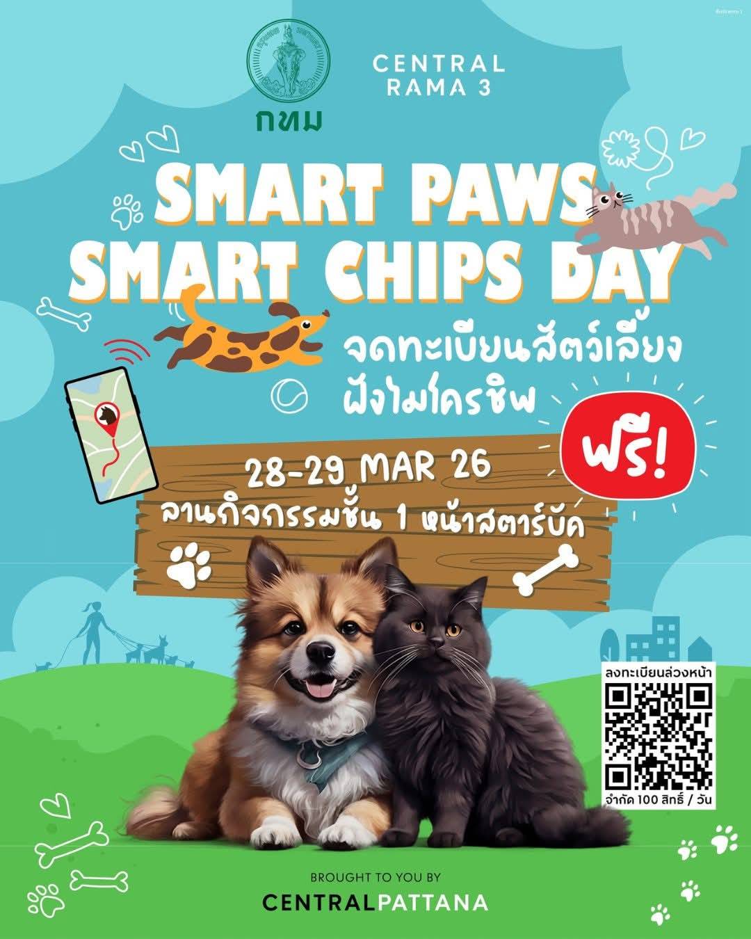 ฝังไมโครชิพ+ฉีดวัคซีนฟรี 28-29มี.ค.69 ที่เซ็นทรัล พระราม3 ค่ะ