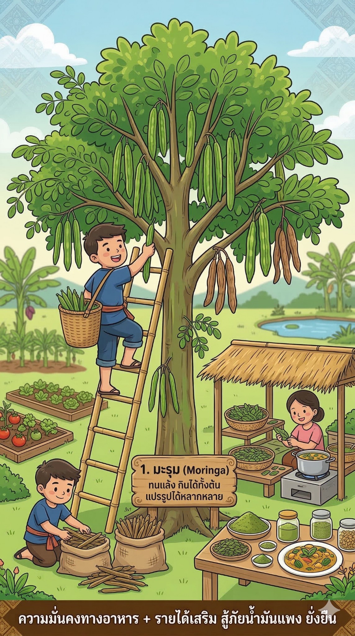 จุดเด่น: ปลูกครั้งเดียว กินได้หลายปี (ใบ/ฝัก/ดอก)